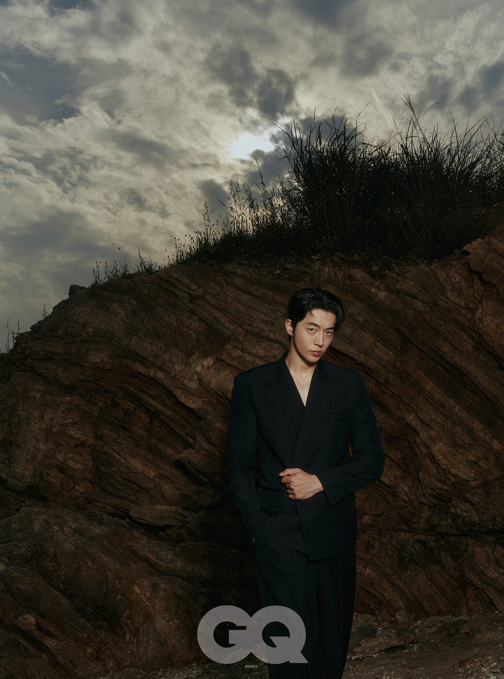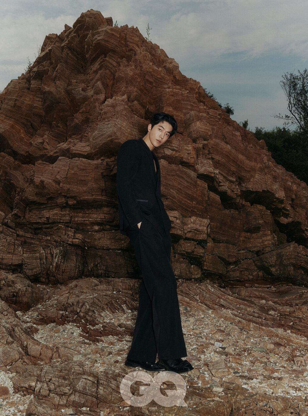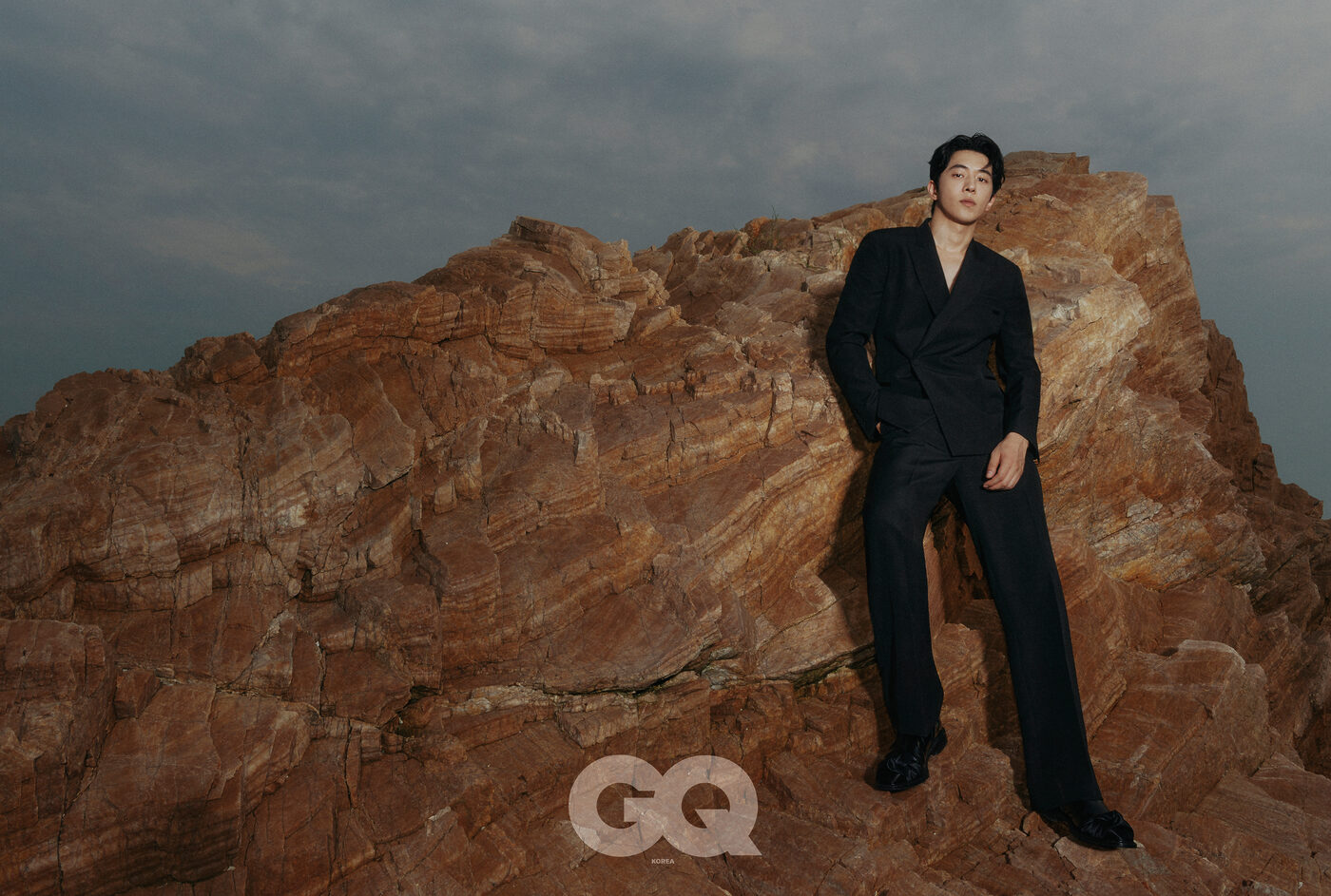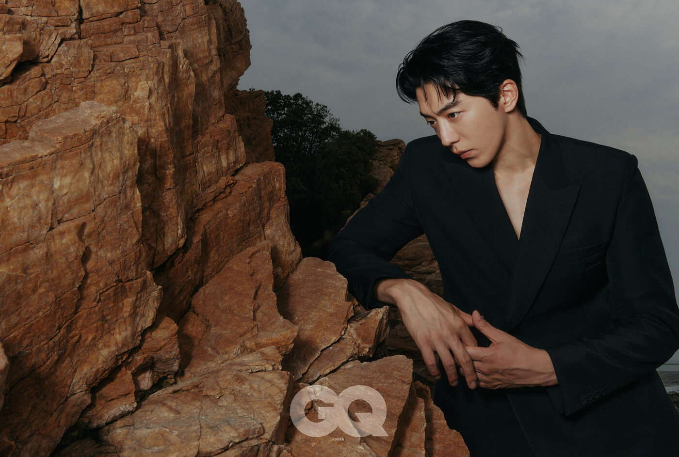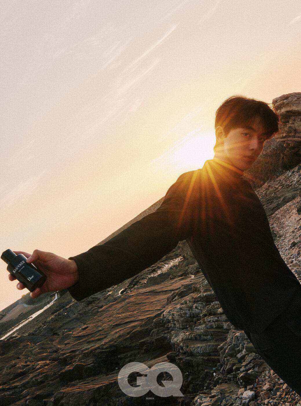 크리스챤 디올 뷰티가 정의하는 남자의 향기가 엄 습하는 신비의 황혼 속에서 남주혁이 입은 더블 랩 재킷, 모두 디올 맨.