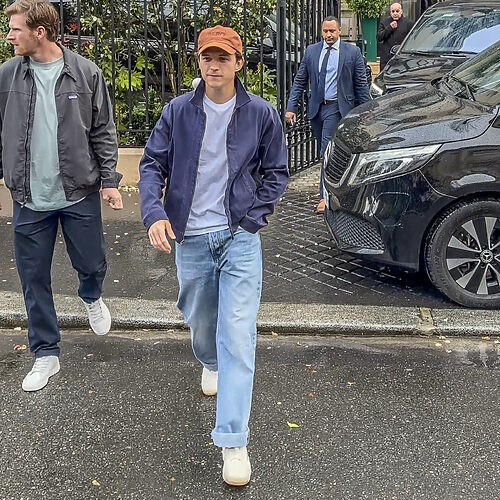 실크 쿠튀르 더블 랩 재킷과 와이드 울 팬츠, 팔마레스 더비 슈즈, 모두 디올 맨.