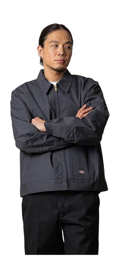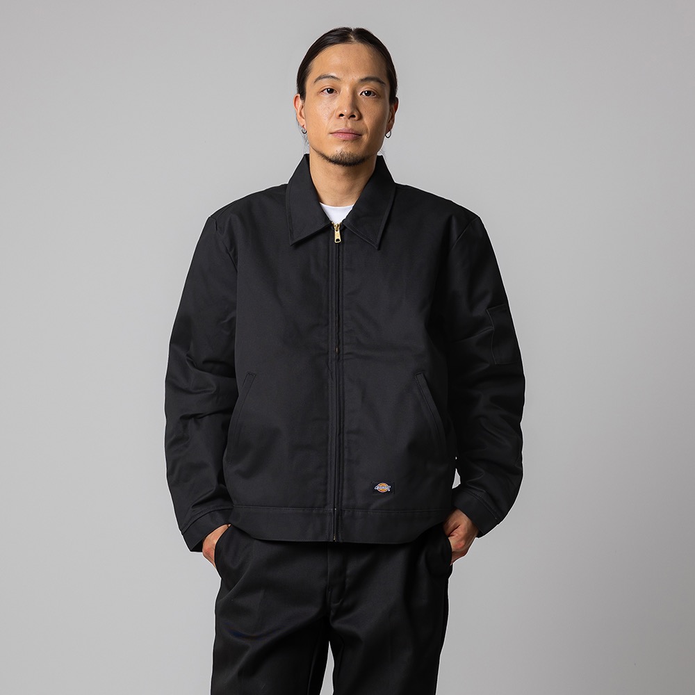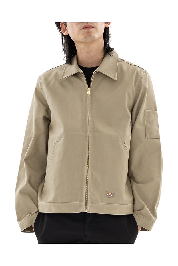 그렇다면, 이 재킷의 대체 무엇이 그렇게 완벽할까? 디키즈의 전설적인 874 팬츠처럼, 아이젠하워 재킷 역시 브랜드의 시그니처 소재인 폴리-코튼 트윌로 제작됐다. 이 원단은 강인한 현장 감독부터 거친 스케이터까지 모두의 험한 사용을 견뎌내도록 만들어진 끈질긴 재질이다. 구성은 그리 복잡하지 않다. 그러니까 좋은 의미에서 단순하다. 구식 포인트 칼라, 앞 지퍼 클로저, 양쪽 손 포켓, 소매의 펜 포켓 등 손가락으로 셀 수 있는 단조로운 디테일만 있다.