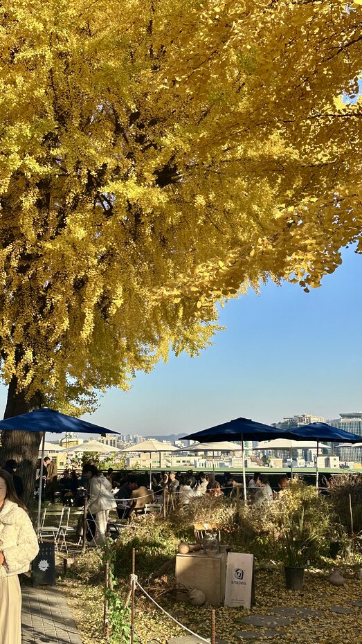 서울 강북구 4.19로에 자리한 카페 몽브루는 은행나무 뷰로 유명하다. 가을철이면 카페 앞 거리가 노랗게 물든다. 넓은 야외 테라스에 앉으면 커피 한 잔과 함께 나무들이 펼치는 가을 한복판에서 여유를 느낄 수 있다. @monbrewcoffee