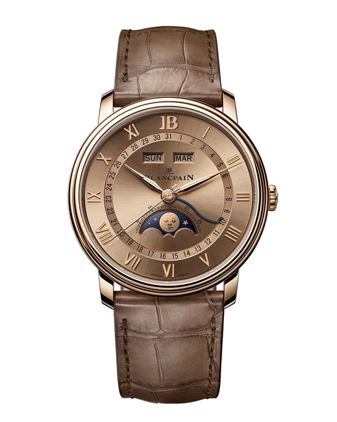 드웨인 존슨은 이 기능의 팬인 듯하다. 그에게 찾기 어렵다는 단점은 희귀하다는 장점으로 작용한다. 랄프 로렌의 수트를 입고 행사에 참여한 그는 갓 출시된 블랑팡 골든 아워 빌레레 꽁티엠 꽁플레를 착용했다. 이는 40.4mm의 레드 골드 드레스 워치로, 블랑팡의 유명한 피프티 패덤즈 제작사가 만든 것이다.