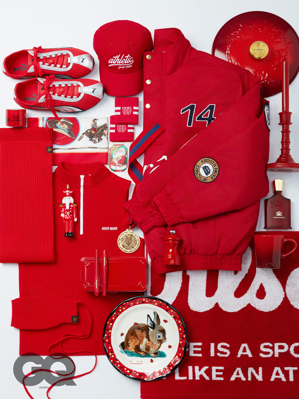 1 에이치스트릿 OG 스니커즈 12만9천원, 푸마. 2 레터링 볼 캡 4만9천9백원, 뉴발란스. 3 레이싱 풀오버 재킷 가격 미정, 드롤 드 무슈. 4 홀리 마미떼 26센티미터 무쇠 솥 57만원, 르크루제. 5 왁스 센티드 캔들 홀더 토마토 리프 22만6천원, 로에베 퍼퓸. 6 루카스 포포 크림 가격 미정, 루카스. 7 웨스턴 일러스트 반다나 스카프 1만4천원, 하바행크 at 샌프란시스코 마켓. 8 매치 라인 쇼트 손목 밴드 1만2천원, 윌슨. 9 빈티지 산타클로스 카드 1만원, V사 at 꽁떼르씨엘. 10 울 립 머플러 16만원, 바토너 at ETC서울. 11 반집업 모크넥 니트 슬리브리스 톱 가격 미정, 미우미우. 12 금메달 모티프 네크리스 가격 미정, 발렌시아가. 13 만년필&볼펜 세트 13만원, 몰스킨 × 카웨코. 14 스틸 툴박스 2만9천원, 토요 스틸 at 더콘란샵. 15 비스트로 라마 페퍼밀 6만9천원, 푸조 at 더콘란샵. 16 켄타우로스 오 드 퍼퓸 59만원, 크리드. 17 네오 컬렉션 V머그 4만5천원, 르크루제. 18 하프 글러브 12만2천원, 바토너 at ETC서울. 19 토끼 일러스트 프린트 디너 플레이트 6만2천원, 꽁떼르씨엘. 20 WTA 타월 6만9천원, 윌슨.