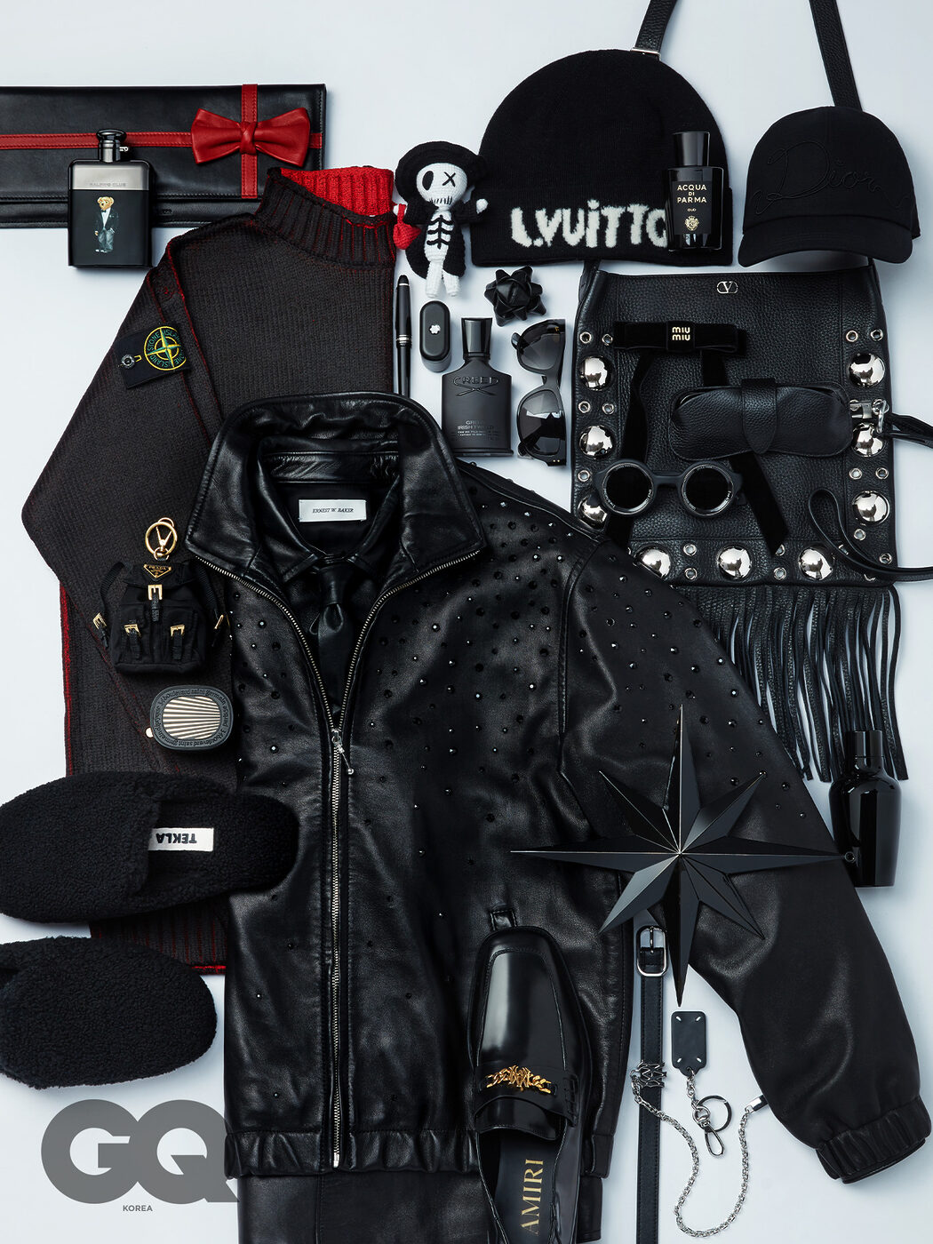 1 레더 지갑 가격 미정, 어네스트 W. 베이커 at 10 꼬르소 꼬모. 2 랄프 클럽 오 드 퍼퓸 가격 미정, 폴로 랄프 로렌. 3 하이넥 니트 톱 가격 미정, 스톤 아일랜드. 4 스컬 백 참 가격 미정, 맥퀸. 5 마이스터스튁 플래티넘 코팅 르그랑 볼펜 76만원, 몽블랑. 6 MTB 03 인이어 이어폰 54만원, 몽블랑. 7 그린 아이리쉬 트위드 오 드 퍼퓸 41만원, 크리드. 8 레더 브로치 가격 미정, 어네스트 W. 베이커 at 10 꼬르소 꼬모. 9 오버사이즈 선글라스 35만7천원, 레이밴 by 에실로룩소티카. 10 니트 비니 가격 미정, 루이 비통. 11 우드 오 드 퍼퓸 42만5천원, 아쿠아 디 파르마. 12 볼 캡 가격 미정, 디올 맨. 13 넬코트 메신저 백 가격 미정, 발렌티노 가라바니. 14 리본 헤어핀 가격 미정, 미우미우. 15 랜야드 선글라스 케이스 25만원, 코스. 16 LV 수퍼 비전 라운드 선글라스 가격 미정, 루이 비통. 17 미니 백 키링 가격 미정, 프라다. 18 차량용 방향제 세트 16만6천원, 딥티크. 19, 20, 21 레더 재킷과 셔츠, 타이 가격 미정, 모두 어네스트 W. 베이커 at 10 꼬르소 꼬모. 22 룸 슬리퍼 66만5천원, 테클라. 23, 24 로고 장식 로퍼, 체인 벨트 가격 미정, 모두 아미리. 25 태그 키링 가격 미정, 메종 마르지엘라. 26 뮤스크 라바줴 29만8천원, 프레데릭 말.