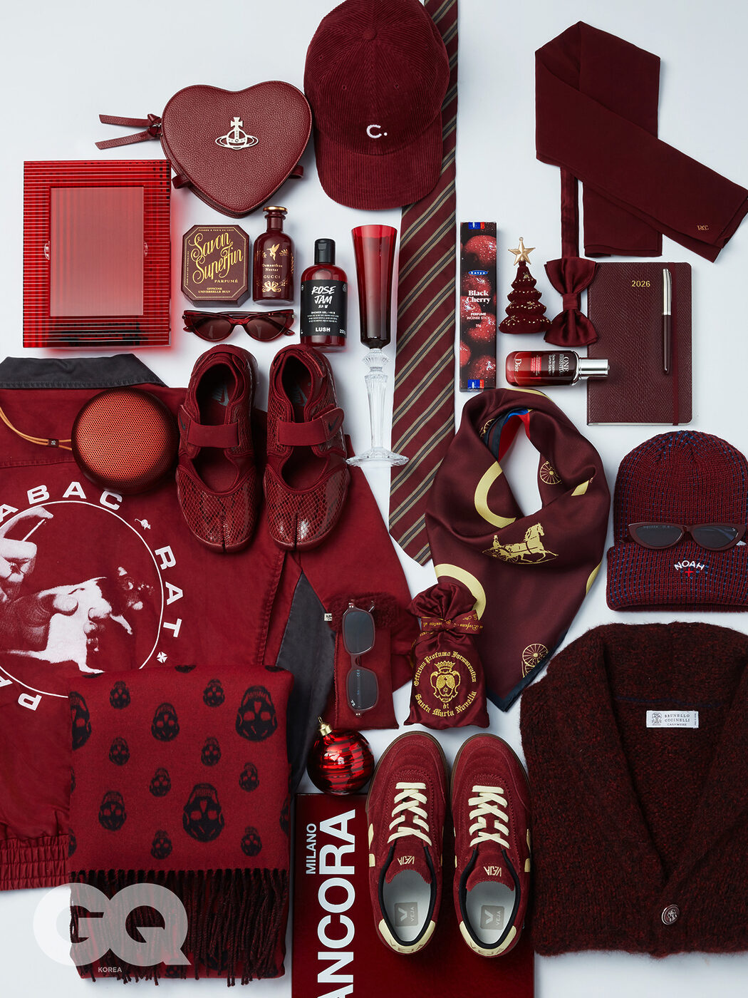 1 아이 포토 프레임 1백35만원, 바카라. 2 크로스 백 가격 미정, 비비안 웨스트우드. 3 클래식 사봉 수페팡 6만원, 불리. 4 오스만투스 넥타 오 드 퍼퓸 35만8천원, 구찌 뷰티. 5 티 바 아이콘 선글라스 가격 미정, 맥퀸. 6 볼 캡 3만9천원, 클로브. 7 로즈 잼 샤워젤 4만원, 러쉬. 8 밀 누이 플루티시모 글라스 가격 미정, 바카라. 9 스트라이프 타이 가격 미정, 아미리. 10 사티아 퍼퓸 인센스 스틱 5천9백원, 나그참파. 11 보타이 가격 미정, 키톤. 12 원 에센셜 스킨 부스팅 슈퍼 세럼 25만3천원, 디올 뷰티. 13 실크 스카프 가격 미정, 렉토. 14 2026 다이어리 10만원, 몰스킨. 15 파카51 코어 버건디 CT 만년필 25만원, 파카. 16 집업 재킷 4백55만원, 앙팡 리쉬 데프리메. 17 베오사운드 A1 3세대 스피커 54만9천원, 뱅앤울룹슨. 18 에어 리프트 가격 미정, 나이키. 19 사각 스카프 가격 미정, 셀린느 옴므. 20 트리컬러 비니 7만9천원, 노아. 21, 22 스파이크 아이웨어, 머플러 가격 미정, 모두 맥퀸. 23 스퀘어 프레임 선글라스 20만1천원, 레이밴 by 에실로룩소티카. 24 안경 케이스 8만9천원, 일다스 at 꽁떼르씨엘. 25 포푸리 파우치 7만8천원, 산타마리아노벨라. 26 스니커즈 가격 미정, 베자. 27 카디건 가격 미정, 브루넬로 쿠치넬리.