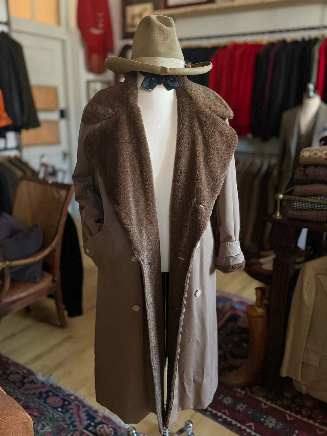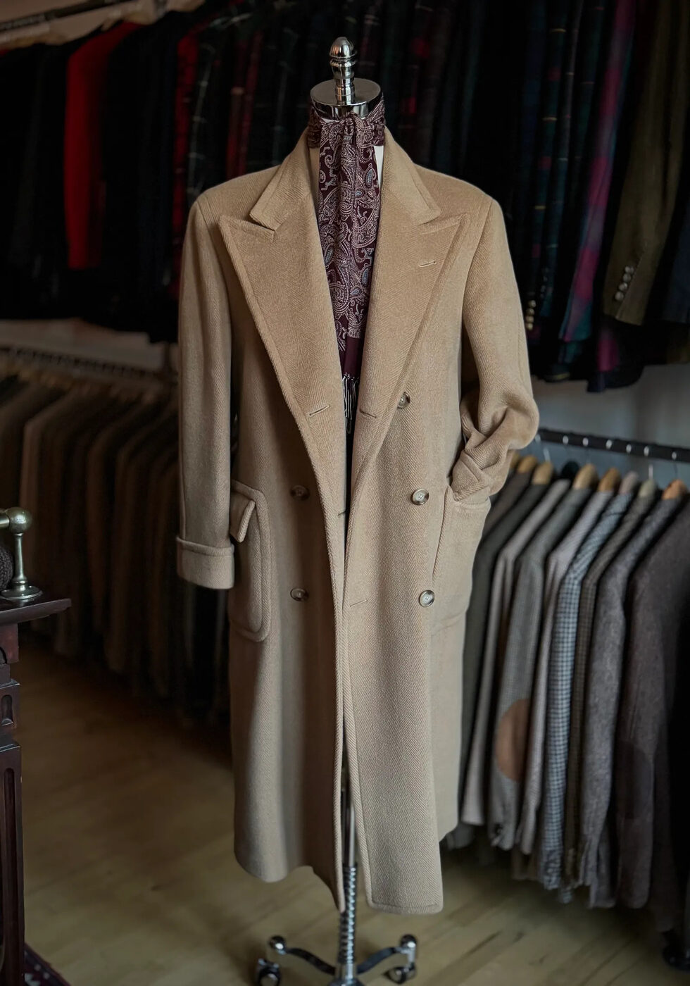 “이 오버코트는 제가 한동안 가지고 있다가, 어느 날 이게 바로 유명한 ‘눈 속의 카우보이’ 사진 속 코트라는 걸 깨달았을 때부터 특히 더 소중해졌어요. 1977년 랄프 로렌은 고객들에게 보내는 최초의 우편형 홍보 브로셔를 만들었죠. 턱시도에 낡은 모자와 코트를 매치하고, 눈 속에서 말을 끌고 걷는 카우보이 모습은 랄프가 처음 시도한 ‘하이-로우’ 이미지 중 하나였고, 이는 그의 스타일 언어에서 시그니처가 됩니다. 코트 자체는 매우 무겁고 벨트가 있으며, 풍성한 알파카 파일 라이닝이 돋보입니다. 정말 아름다운 옷이에요!”