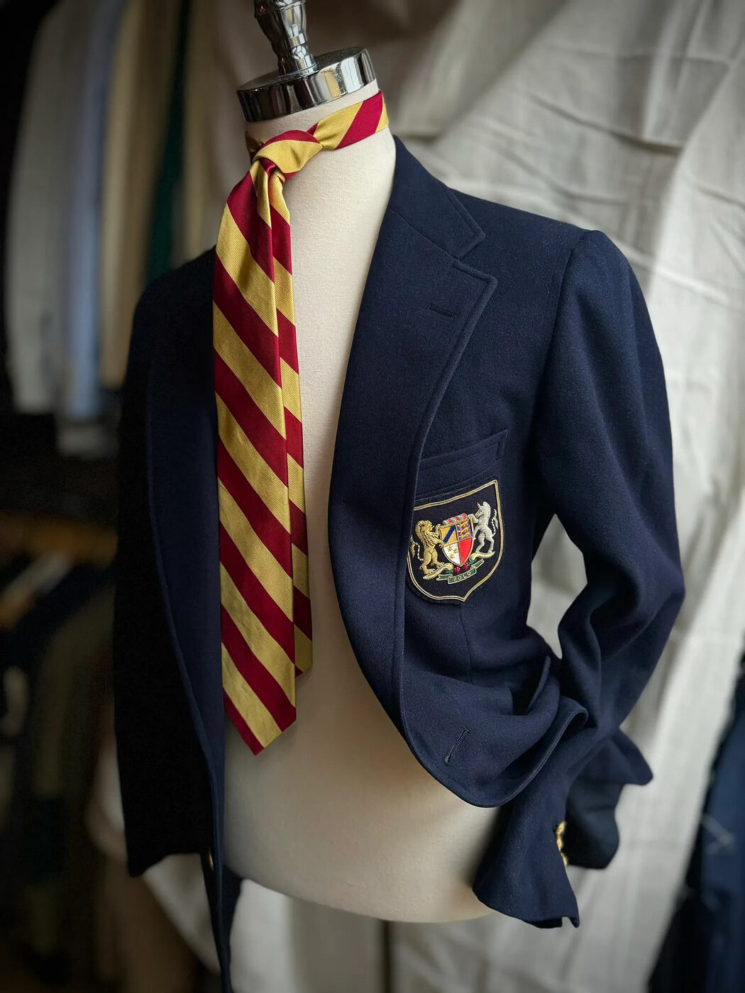 “‘버지 커박스’ 블레이저라는 이름은 유명한 서퍼이자 폴로 모델인 커박스를 기리기 위해 제가 붙였습니다. 이 블레이저가 중요한 이유는 랄프 로렌이 폴로를 위해 처음 만든 금실 크레스트가 달린 첫 번째 재킷이기 때문입니다. 저는 이 크레스트 자체를 1983년인가 84년에, 십 대 시절 일하던 폴로 매장에서 구매했고, 40년 넘게 여러 폴로 네이비 블레이저에 달아 입었습니다. 지금은 1980년경의 두꺼운 도스킨 소재, 두툼한 웰트 심을 가진 시기별 폴로 블레이저에 부착되어 있어요. 당시 폴로 매장에서 일할 때, 커박스가 이 블레이저를 입고 찍은 상징적인 브루스 웨버 사진이 벽에 액자로 걸려 있었고, 저는 매일 그것을 보았죠.”