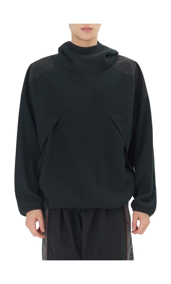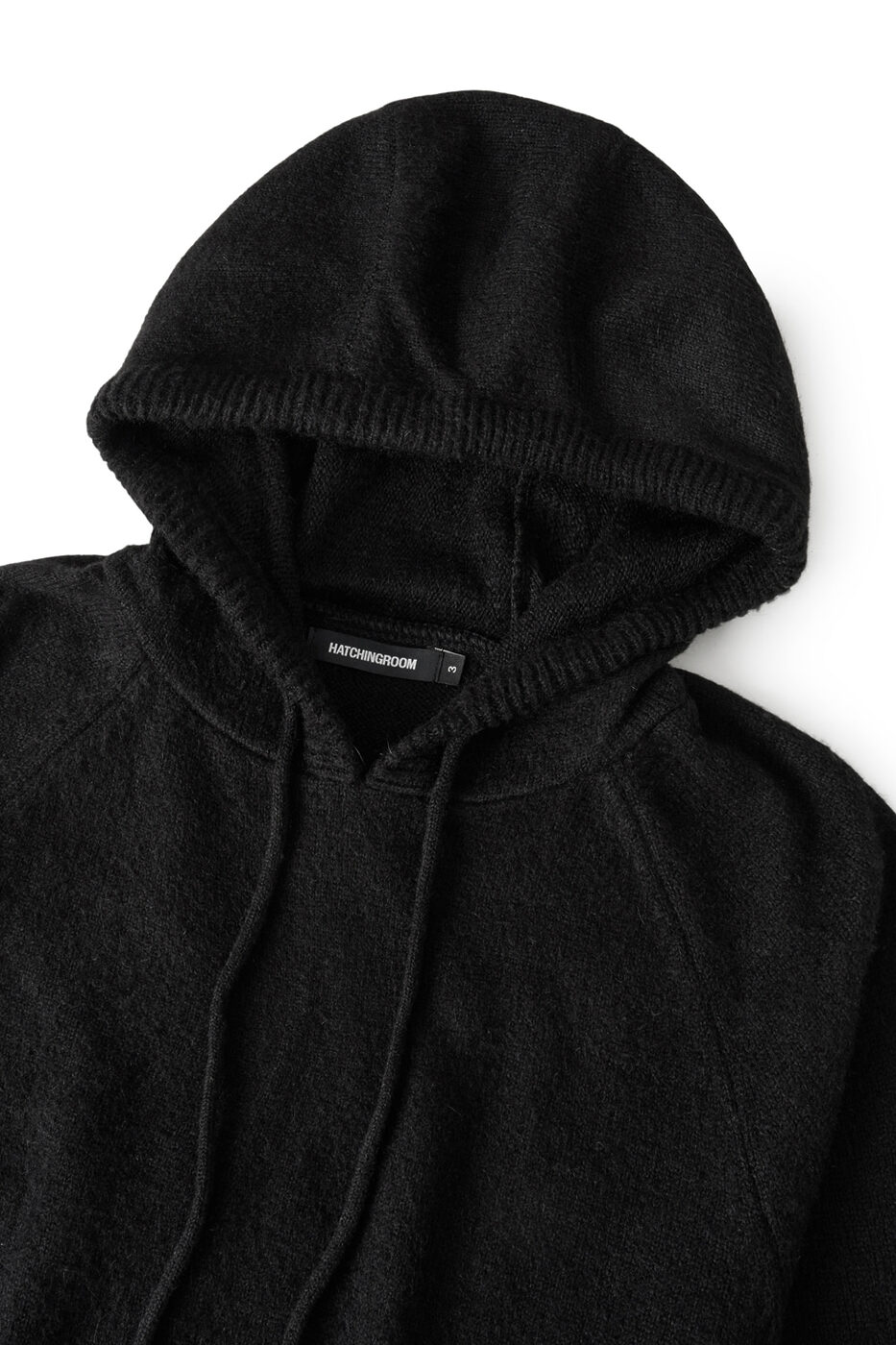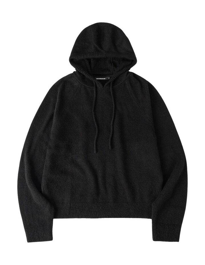 한층 부드럽고 포근한 무드를 원한다면 해칭룸의 베이스 후디 니트도 좋은 선택. 아크릴, 나일론, 모헤어, 울이 블렌딩된 헤어리 소재가 특유의 따뜻한 질감을 만들어주며, 래글런 슬리브와 레귤러 실루엣, 약간의 크롭 기장이 더해져 니트 후디 특유의 여유로운 실루엣을 완성한다. 블랙과 버건디 두 가지 컬러로 구성돼 데일리룩에도, 포인트 룩에도 쉽게 매치된다.
