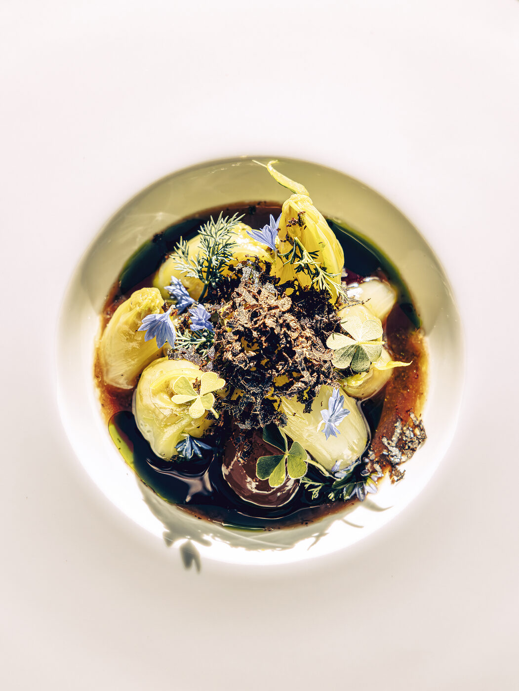 푹스와 슈나이더는 블랙 포레스트에서 쉽게 볼 수 있는 감자튀김 요리인 블랙 푸딩 브레겔레와 마리네이드한 고기를 천천히 익힌 자우어브라텐 같은 요리를 기본으로 선보인다. 이 외에도 멧돼지 딤섬과 송아지 대신 사슴 고기를 사용한 비텔로같이 이 지역에서는 볼 수 없는 요리를 내놓기도 한다. “저희는 전통과 너무 멀어지고 싶지도 않지만 새로운 도전에 목말라 있기도 해요.” 짙은 회색 재킷을 거친 푹스가 오래된 목조 벽과 천장이 있는 거실에 앉아 말했다.