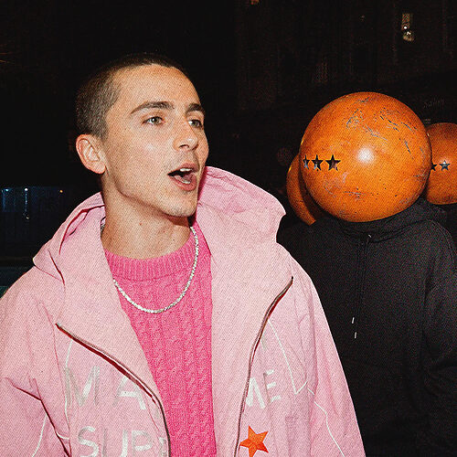 티모시는 그 위에 더 올렸다. 풀 가죽 크롬하츠 수트, 탁구채 모양의 크로스바디 백, 그리고 교통콘 오렌지와 완벽히 맞추기 위해 특별히 염색한 커스텀 크롬하츠 팀버랜드까지. 세심했고, 혼돈스러웠고, 완전한 “나 이 정도로 유명하니까 가능한 거야” 스타일이었다. 그리고 이건 점점 그의 시그니처가 되고 있다. 지난 2월 ‘A Complete Unknown’ 프레스 투어에서도 완전 핑크 착장에, 색을 맞춘 팀버랜드까지 똑같이 연출한 적이 있다.