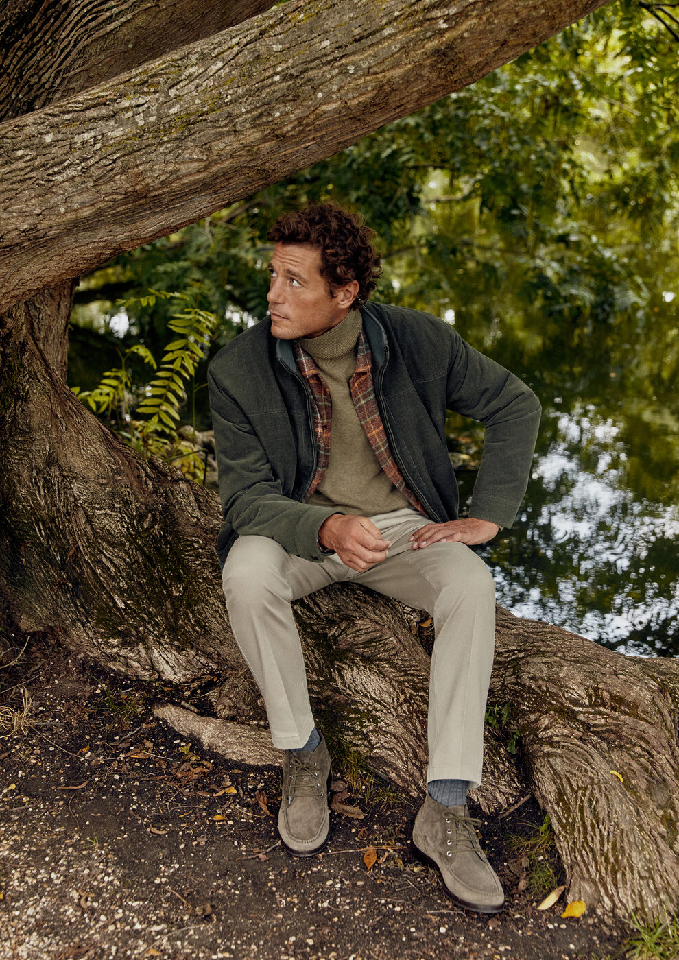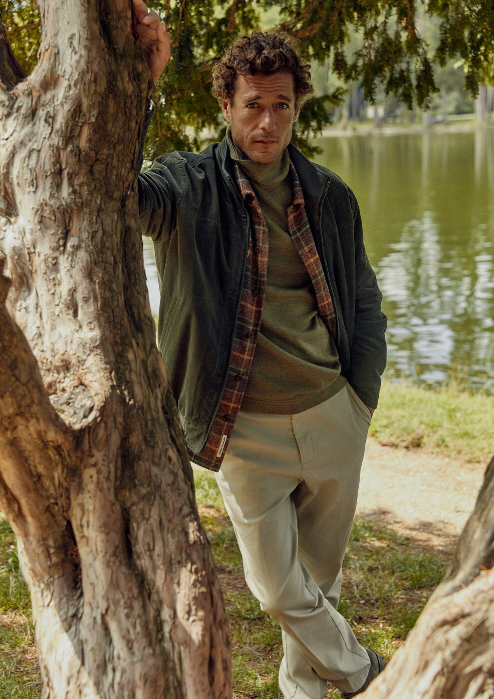 모네의 ‘수련’ 작품이 있는 오랑주리 미술관으로 향하는 오후 3시. 에펠타워가 보이는 튈르리 정원 끝에서 유리창으로 둘러싸인 건물을 만날 수 있다. 파리를 찾은 많은 관광객과 실내의 더운 난방을 고려한다면 효과적인 레이어링 룩을 설계하는 것이 중요하다. 스웨이드 유틸리티 패딩은 실내외 경계 없이 세련된 실루엣을 완성한다. 올리브 컬러의 메리노 울 니트 폴라는 립조직으로 부드러운 촉감과 보온성이 특징. 체크 울 셔츠를 레이어드하면 아우터를 클락룸에 맡겨 단독으로 입어도 무리가 없는 스타일링이 된다. 베이지 치노 팬츠로 활동성과 따뜻한 컬러감을 곁들이자.