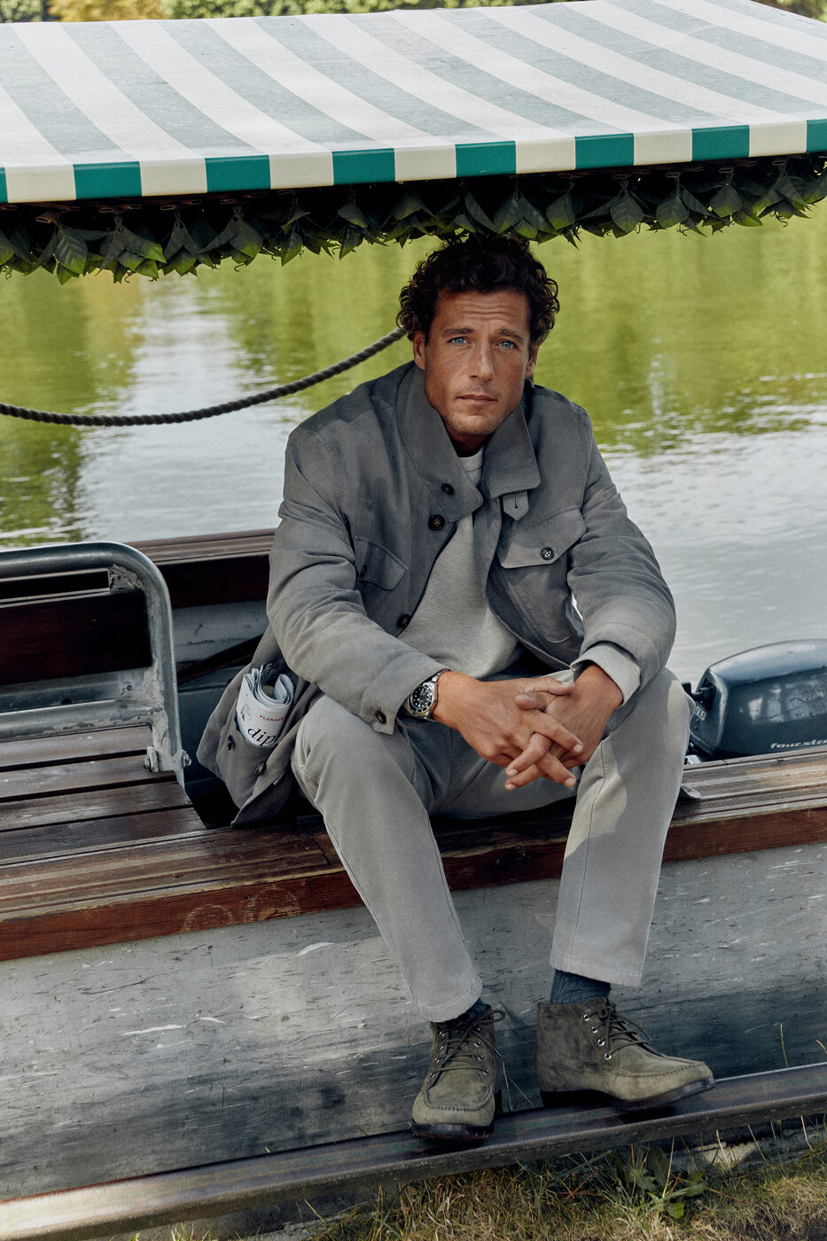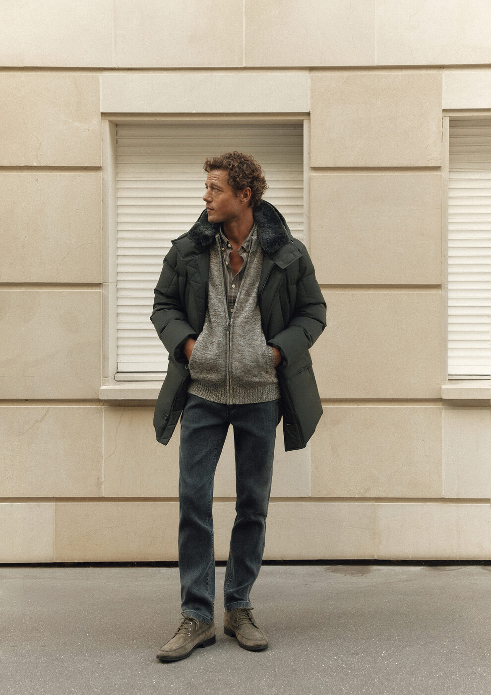 몽마르뜨 언덕 아래, 파리 9구의 카페 KB cafe shop에서 시작되는 하루. 로스팅 향과 사람들이 뒤섞여 북적이는 작은 카페지만 젊고 활기찬 아침 공기를 느끼기에는 제격인 로컬 스팟이다. 패디드 사파리 재킷 위에 경량 패딩을 걸치면 쌀쌀한 오전 날씨에 대비하면서도 부피감을 줄일 수 있다. 따뜻한 커피와 아침 햇살에 체온이 올라가면 경량 패딩을 벗어 손에 들고 다니자. 울 스트레치 팬츠에 스웨이드 모카신은 가벼운 산책도 무리 없는 선택. 활동성을 갖추면서도 클래식한 룩을 완성한다.