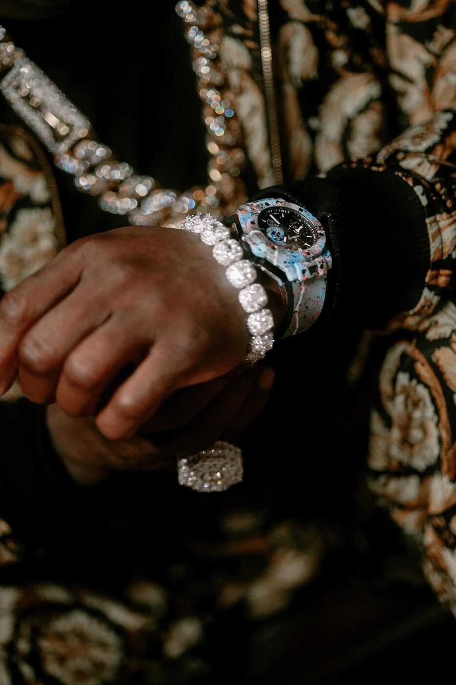 커스텀 빅뱅 스트리트 아트 MECA-10을 착용한 50센트 Hublot