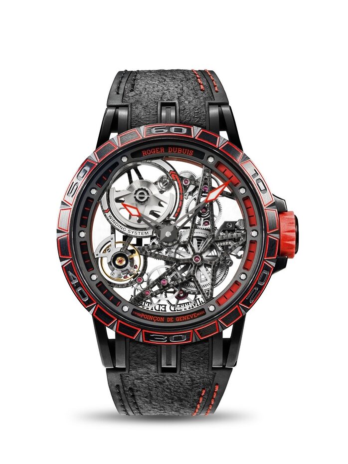 엑스칼리버 스파이더 시리즈는 스포츠카 바퀴를 연상케 하는 디자인으로, 시계 곳곳에 레이싱 코드가 담겨 있다. 이 모델은 이탈리아의 타이어 브랜드 피렐리와 협업한 것으로, 모터스포츠 경주에서 우승한 피렐리 타이어 고무로 스트랩을 만들었다. 피렐리 타이어 패턴이 새겨져 있는 것이 특징이다. 정교한 스켈레톤 디자인 또한 눈에 띈다. 그러나 외관만 훌륭한 것은 아니다. 최대 60시간의 파워 리저브를 자랑하는 자체 제작 오토매틱 무브먼트가 탑재되는 등 기술적으로도 뛰어난 모델이기 때문이다. 단 88개 한정 생산된 이 시계의 정가는 7만500달러로 한화 약 1억400만원이다.