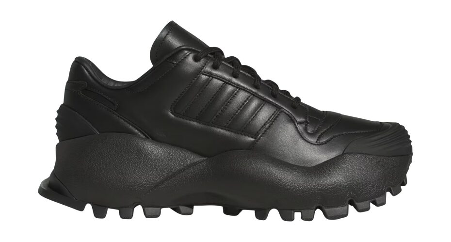 하지만 언제나 그렇듯, 중심은 스니커다. 차바리아의 아디다스 작업은 그동안 LA 레이커스의 전설 카림 압둘자바의 1970년대 시그니처 모델, 자바 로우를 중심으로 전개돼 왔다. 이번 컬렉션은 아디다스의 아카이브를 더 깊이 파고든다. 웨이브 형태의 새로운 솔과 고급 가죽 어퍼를 더한 올블랙 포럼 로우는 이전보다 훨씬 런웨이에 어울리는 모습이다. 오리지널 실루엣을 고수하고 싶은 이들을 위해서는 스트랩까지 그대로 살린 포럼 하이도 준비됐다. 차바리아 특유의 블랙과 레드 컬러 조합으로 완성됐다.