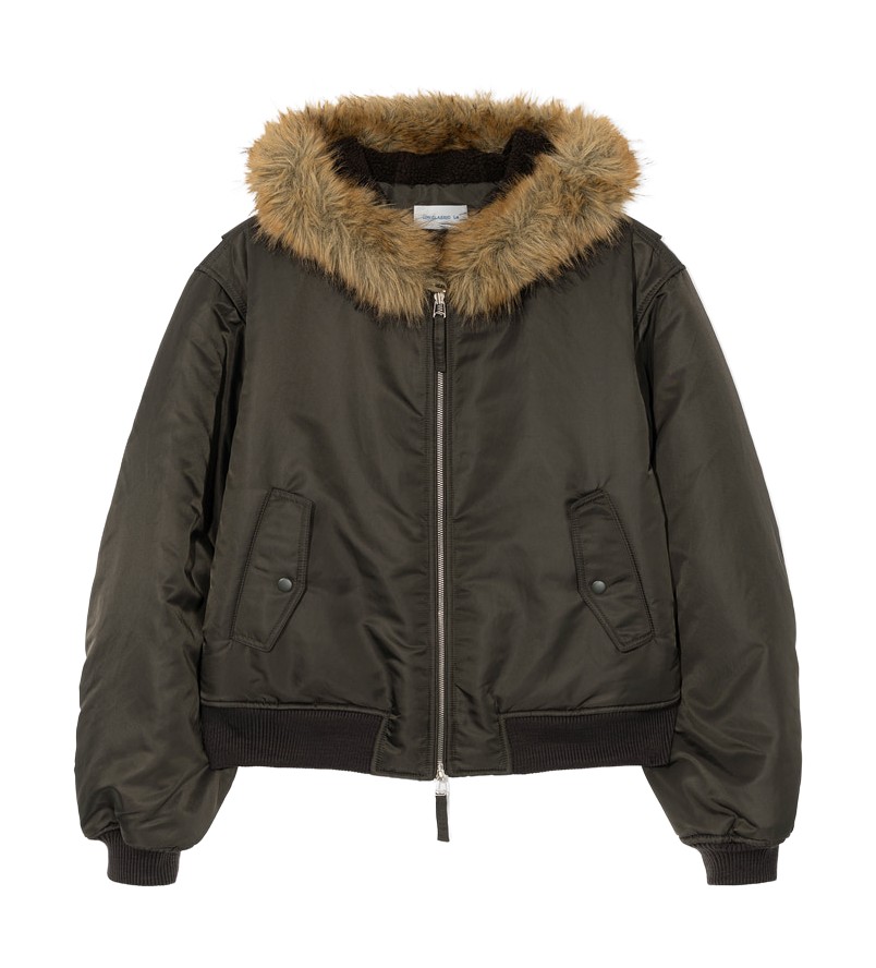 우찬은 빈티지하게 눌린 퍼가 인상적인 카키 봄버로 룩을 완성했다. 단추를 모두 잠그지 않고 블랙 이너가 자연스럽게 보이도록 한 쪽 팔만 내어 입어 퍼의 존재감을 오히려 더 선명하게 살린 것이 포인트. 퍼가 화려한 만큼 이너는 차분하게 눌러줘야 일상 룩에서도 과해 보이지 않는다. @allday_project