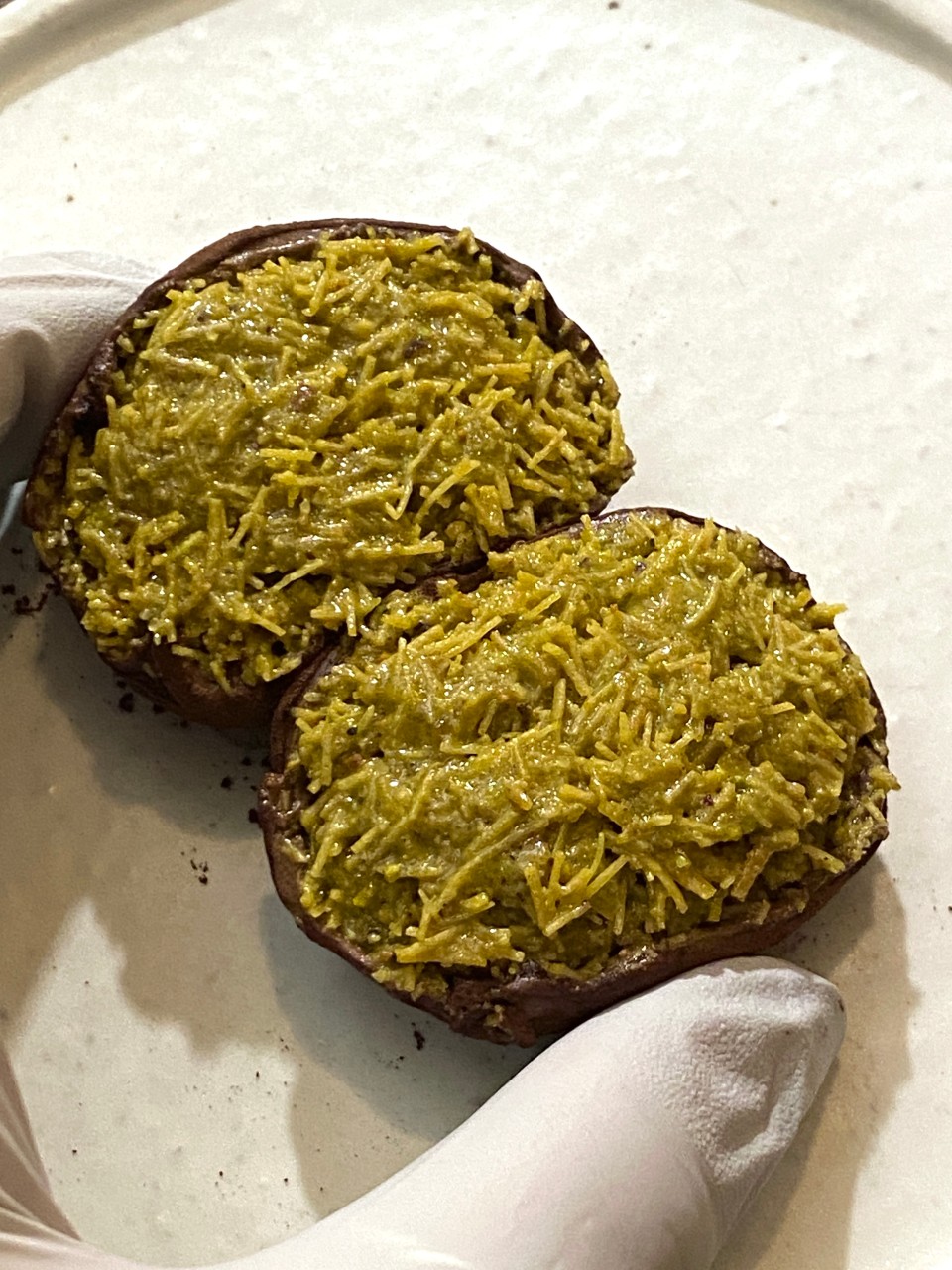 한 입에 밀도부터 다른 쫀득함! 쫀득한 마시멜로우 피 안에 피스타치오 스프레드를 가득 채운 카다이프 필링이 핵심이다. 가게마다 식감과 비율이 천차만별인 두바이 쫀득 쿠키 중에서도 유독 추천이 많은 이유는, 부드러운 겉피와 속을 꽉 채운 수제 필링 덕분. 씹을수록 서걱서걱 살아나는 카다이프 식감이 매력적이다. 가격 6천 원.