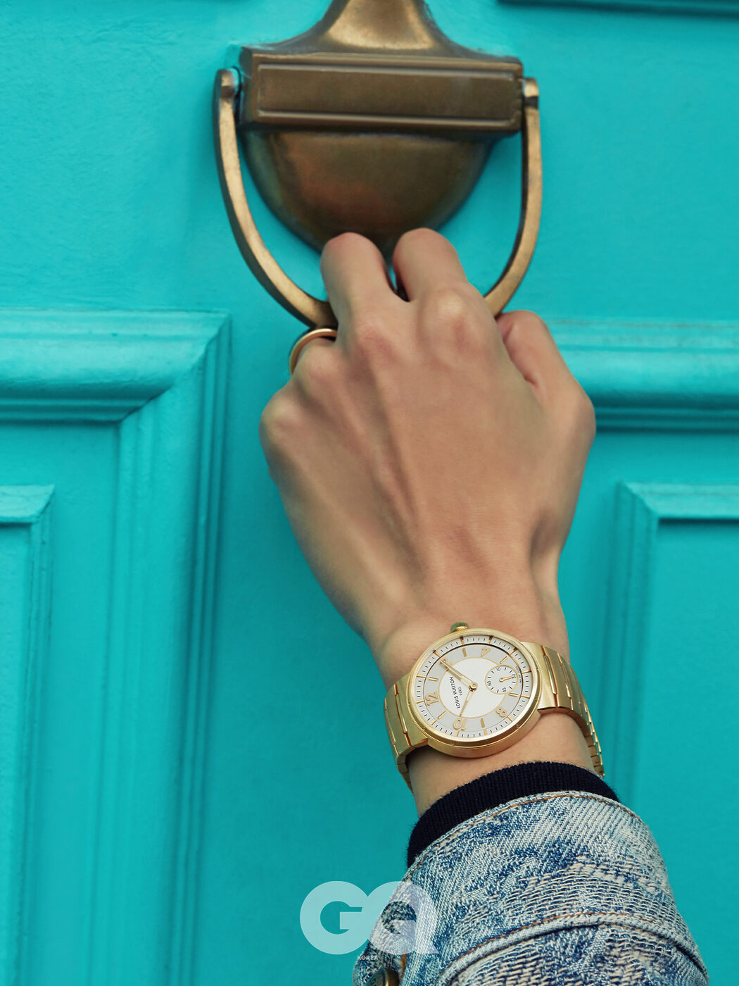 데님 트러커 재킷과 니트 블루종, 레 가스통 비통 링 가격 미정, 모두 루이 비통.