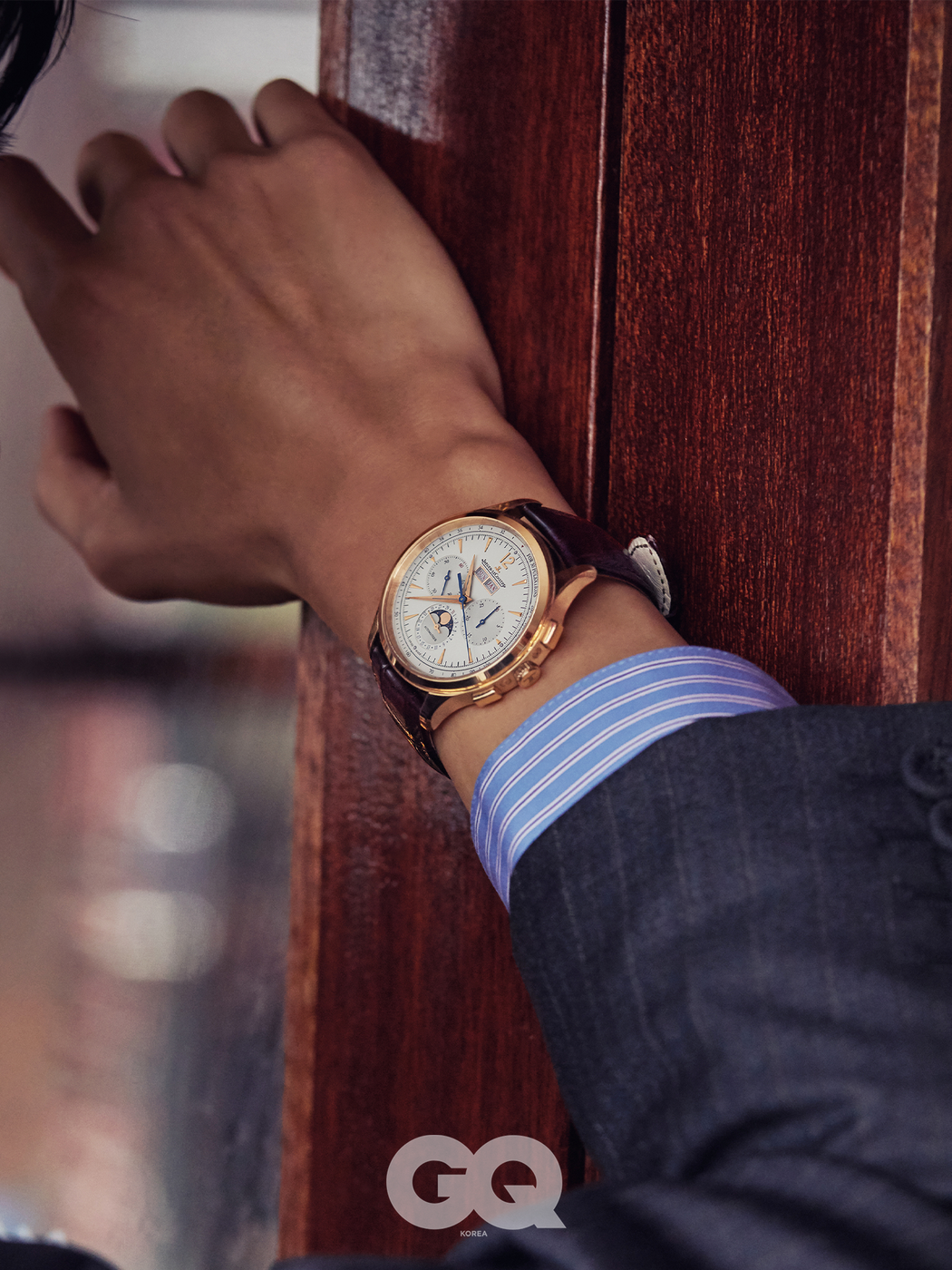 완벽함에 대한 지독한 노력이 폭발한 시계. 핑크 골드 케이스와 실버 선레이 다이얼 위로 월과 요일을 표기하는 디스플레이, 30분 카운터와 크로노그래프 카운터 그리고 날짜와 푸른 문페이즈를 고루 올렸다. 얇게 저민 핸즈와 펄소미터 스케일까지 더해 실용성과 미학적인 아름다움이 공존한다. 마스터 컨트롤 크로노그래프 캘린더 가격 미정, 예거 르쿨트르.