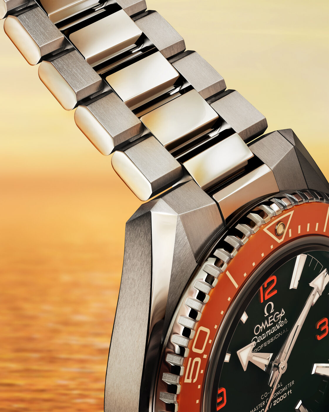 2005년 첫선을 보인 플래닛 오션은 오메가 다이빙 워치의 DNA인 1950~1960년대 씨마스터 300에서 영감을 받았다. 당시 아카이브에서 차용한 가독성 높은 블랙 다이얼, 15분 단위 아라비아 숫자, 화살촉 핸즈, 내부 링 구조의 다이빙 스케일 베젤은 오늘날까지도 유효한 디자인 코드로 이어지고 있다. 4세대 플래닛 오션에서 가장 두드러진 변화는 디자인 구조의 진화다. 시그니처 컬러인 세라믹 오렌지는 이번 세대에 들어서 더 선명하고 영롱한 빛을 띠게 되었다. 좁고 가는 베젤 위에 세라믹으로 맑고 균일한 컬러를 구현하는 일은 결코 간단한 기술이 아니다. 오메가는 지속적인 연구 끝에 한층 생동감 있는 오렌지 컬러를 표현하는 데 성공했다. 또한 1980~1990년대 아카이브에서 영감을 받은 날카롭고 각진 표면의 피티드 Fitted 구조를 적용, 케이스와 브레이슬릿을 포함한 전체 실루엣이 빈틈없이 매끈하게 이어지도록 했다. 슬림해진 브레이슬릿은 더욱 편안한 착용감을 선사하며, 폴딩 버클 안쪽에는 6단계 미세 조절이 가능한 익스트라 다이버 익스텐션이 더해져 수중에서도 손쉬운 조절이 가능하다. 러버 스트랩 역시 동일한 폴딩 버클을 적용한다. 또 스위스 계측학 연방학회(METAS)가 인증한 최고 수준의 정확성·성능·자기 저항력을 갖춘 코-액시얼 마스터 크로노미터 칼리버 8912가 탑재되었으며, 60시간의 파워 리저브를 제공한다.