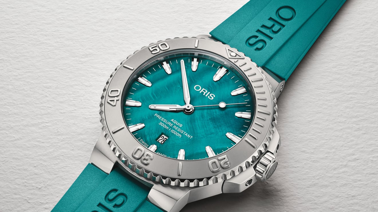 마더 오브 펄의 미학과 지역 활성화의 명분을 동시에 챙긴 시계가 있다. 오리스의 뉴욕 하버 리미티드 에디션 2다. 이 모델을 통해 오리스는 뉴욕항의 굴 10억 마리 복원을 목표로 활동 중인 비영리단체를 지원한다. 뉴욕항의 조류 낀 바닷물과 굴 껍데기에서 영감받아 그린 컬러가 선정됐고, 다이얼에 반짝이는 굴 껍데기 효과가 더해졌다. 칼리버 733-1이 탑재됐으며 41시간 파워 리저브를 제공한다. 2000개 한정 생산됐다. 465만 원.