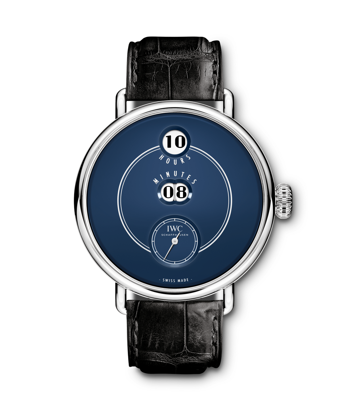 IWC 최초로 점핑 아워를 장착한 폴베버 150주년 헌정 에디션은 역사적인 폴베버 시계에 바치는 헌사로, 회전 디스크의 대형 숫자로 시간과 분을 표시한다. 차분한 블루 컬러 다이얼에, 현재 시각에 해당하는 숫자 외에는 볼 수 없다는 점에서 가독성이 극대화된다. 칼리버 94200이 탑재됐고 60시간 파워 리저브를 제공한다.