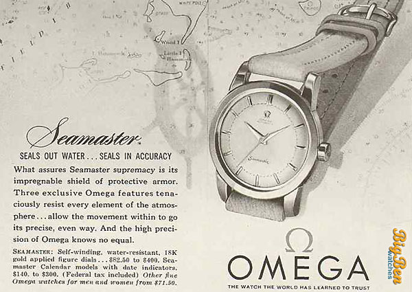 브랜드 100주년을 맞은 1948년, 지금의 오메가를 대표하는 다이버 워치 씨마스터를 출시했다. 오메가와 군의 긴밀한 협력으로 탄생한 씨마스터는 지상과 해수면 아래에서 작전을 수행하기 위해 제작했다. 씨마스터의 핵심은 물이 들어가지 않도록 넣은 고무 소재 O-링 개스킷이었다. 당시만 해도 방수 시계는 온도 변화에 민감한 납 또는 셀락 개스킷을 사용했다. 그러나 씨마스터는 잠수함에서 주로 사용하는 고무 개스킷을 넣어 방수력을 극대화했다.