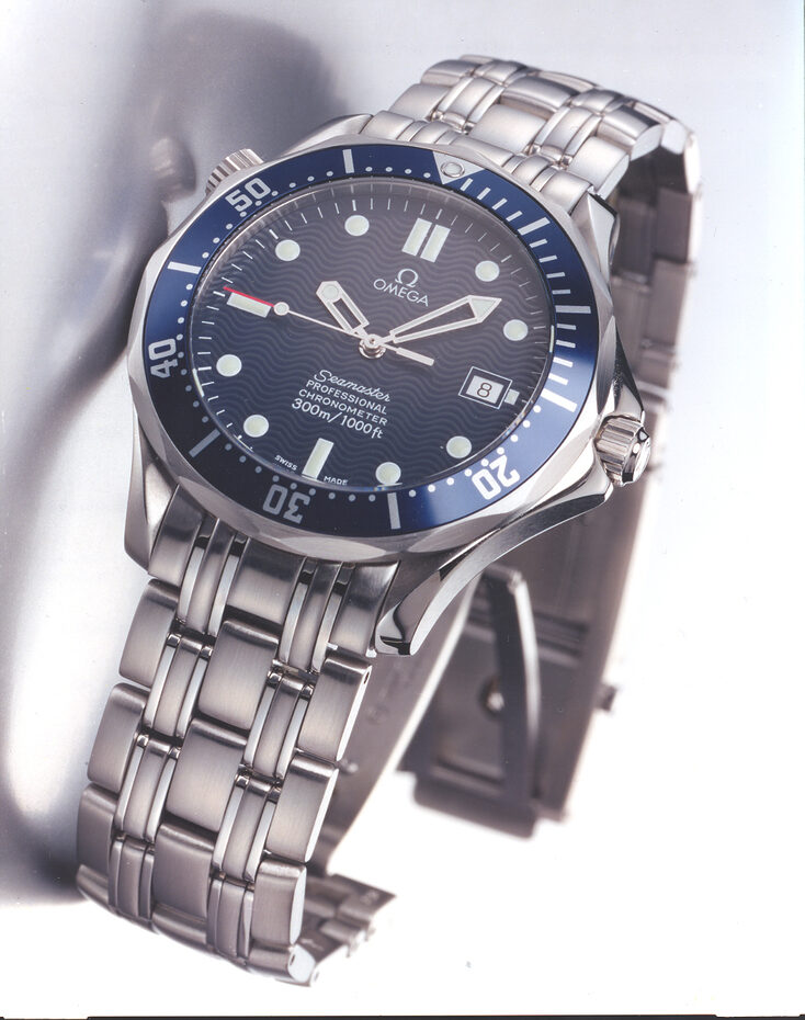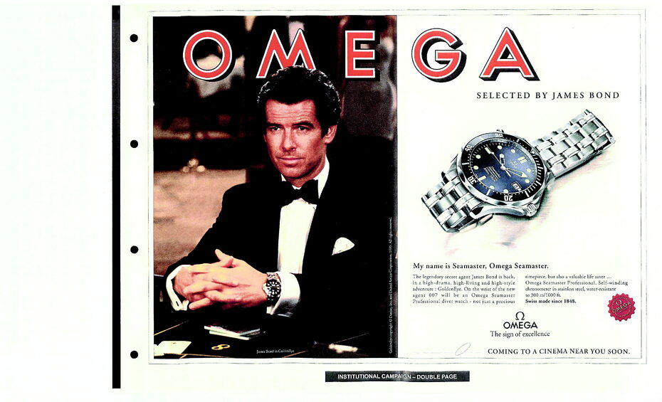 1995년, 오메가와 제임스 본드의 인연이 시작됐다. 피어스 브로스넌이 새롭게 제임스 본드 역할을 맡은 <007 골든아이>의 프로덕션 디자이너 린디 헤밍은 영국 해군의 시계인 씨마스터만이 장교 출신인 본드의 시계로 적합하다며 오메가와 손을 잡는다. 본드는 새로운 시계인 씨마스터 다이버 300M를 착용하고 탑재된 레이저를 이용해 위기의 순간을 극복한다. 씨마스터는 수많은 ‘007 시리즈’에서 활약했고, 2022년에는 제임스 본드 시리즈 60주년을 기념한 에디션도 공개했다.