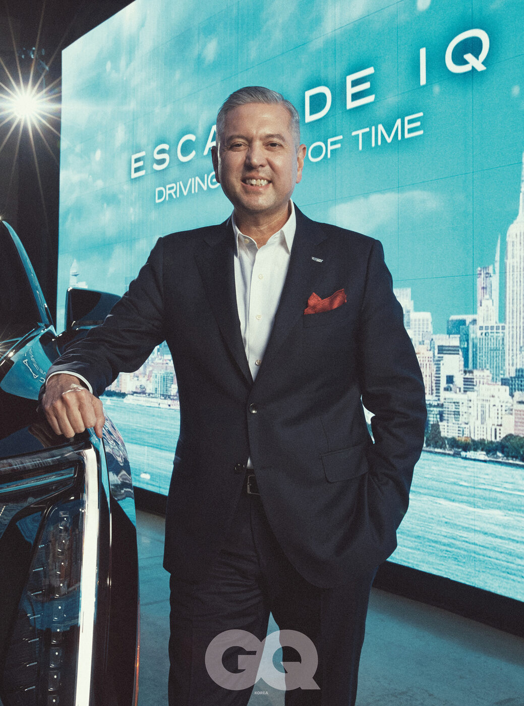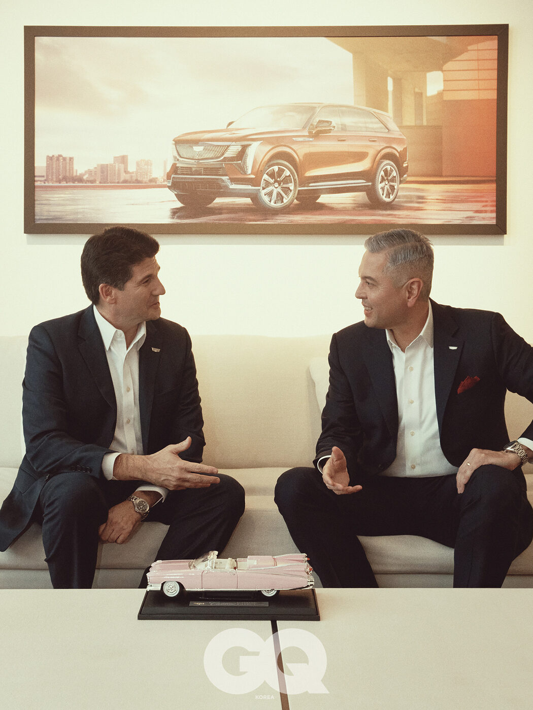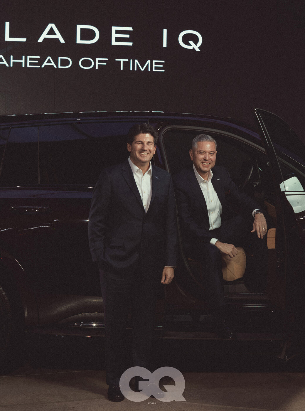 GQ 오늘은 캐딜락의 상징적 존재인 에스컬레이드의 전동화 모델, ‘에스컬레이드 IQ’를 론칭하는 날입니다. 이를 기념하기 위해 두 분이 함께하셨고요.