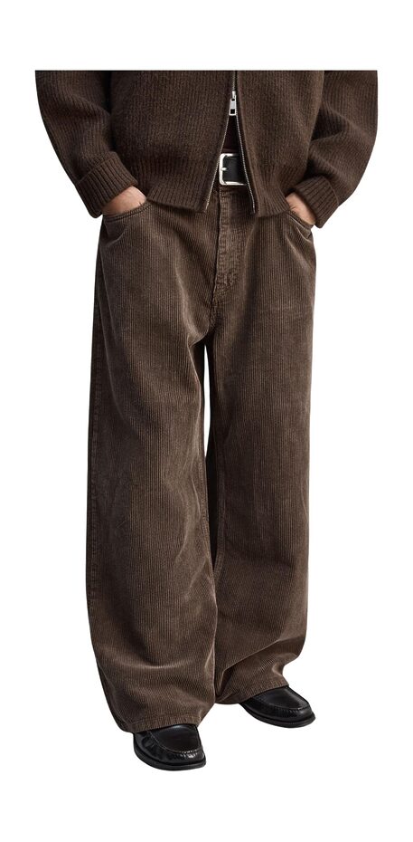 코듀로이 하면 가장 먼저 떠오르는 컬러이자 가장 실패 확률이 낮은 선택. 브라운은 코듀로이의 정석이라 불릴 만큼 소재의 질감을 가장 잘 살려준다. 짙은 다크 브라운부터 노란 기가 도는 초콜릿 브라운까지 컬러 웨이도 다양하다. 어떤 상의와도 자연스럽게 어울려 올겨울 하나쯤 장만해두면 손이 자주 가는 바지가 된다. 니트, 맨투맨, 후드 티셔츠는 물론 셔츠까지 폭넓게 매치 가능해 데일리 팬츠로 제격이다.