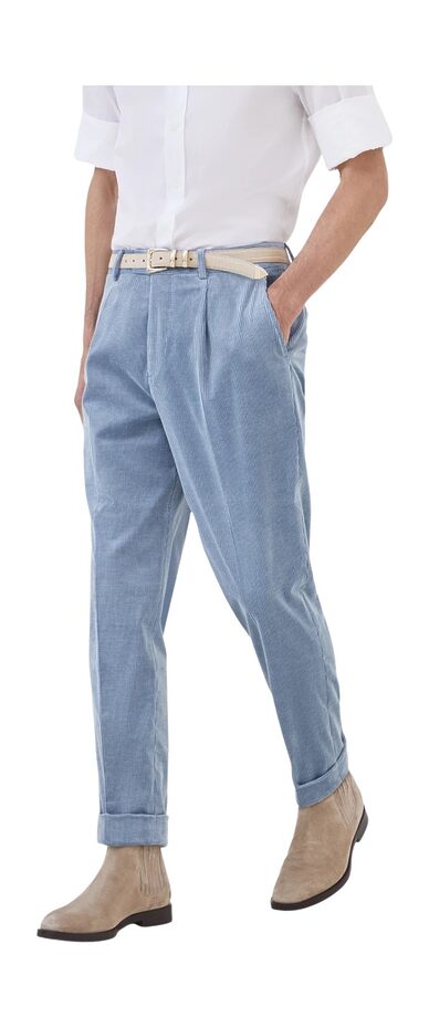 코듀로이 소재 특성상 통통 튀는 컬러도 충분히 매력적이다. 2026 트렌드 컬러 중 하나로 꼽히는 쿨 블루는 차가운 빙하에서 영감을 받은 색감으로, 부드러운 코듀로이 소재와 만나면 의외로 따뜻하고 감각적인 대비를 만든다. 이종석은 빈티지한 쿨 블루 코듀로이 수트 셋업에 애쉬 브라운 스웨이드 로퍼를 매치해 세련된 레트로 무드를 살렸다. 반면 티모시 샬라메의 빈티지 핑크 코듀로이 와이드 팬츠는 심플한 티셔츠와 함께 연출해 힘을 뺀 빈티지 감성을 보여준다.