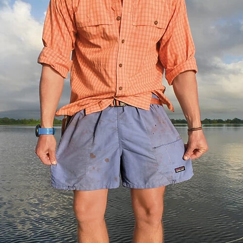 파타고니아에는 의심의 여지 없는 명작들이 몇 가지 있는데, 배기스는 그 대표 사례다. 7인치 포지 그레이 컬러의 내 배기스는 더운 계절엔 시야에서 사라지는 법이 없다. 그 인상이 워낙 강렬해 아버지께 아버지날 선물로 블랙 컬러를 사드렸고, 이제 아버지는 그릴 앞에 설 때마다 그걸 입고 있다. 하이킹이든, 서핑이든, 손님에게 미디엄이냐 미디엄 레어냐를 묻는 순간이든, 이 반바지는 다기능의 정의다.