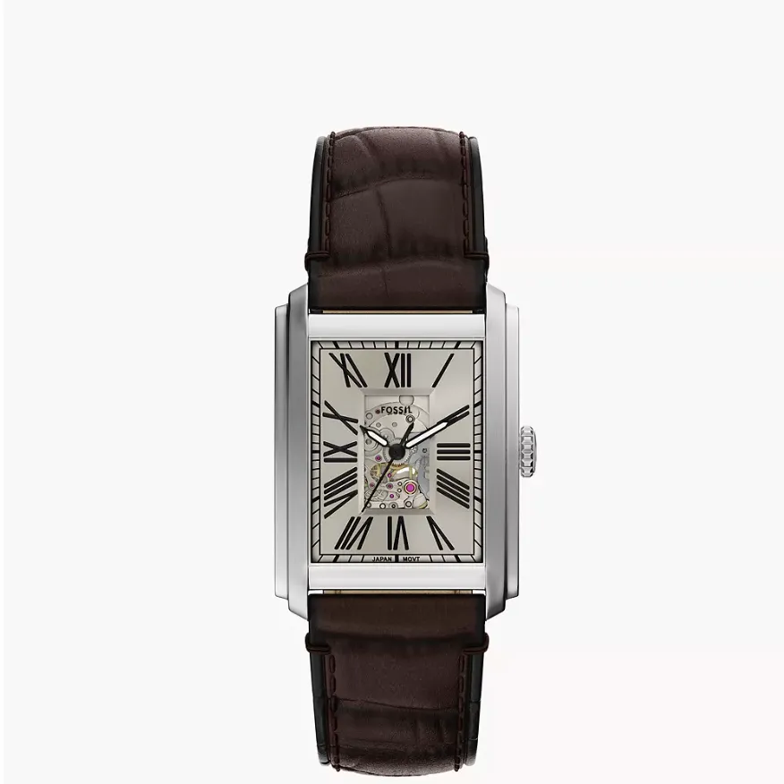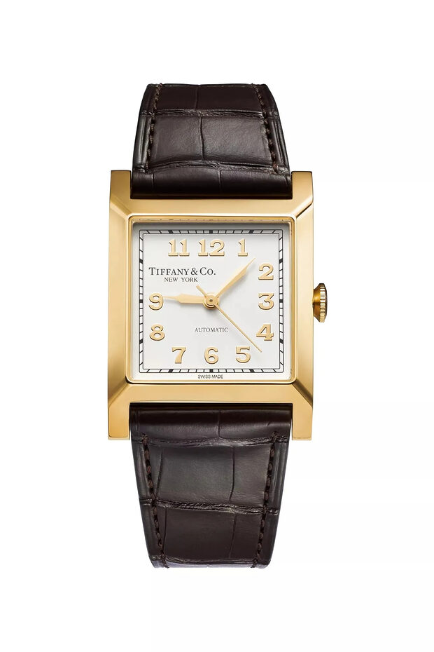 스토리는 탱크를 연상시키는 티파니 앤 코의 유니언 스퀘어를 선택해, 절제된 자동 드레스 워치로 존재감을 드러냈다.