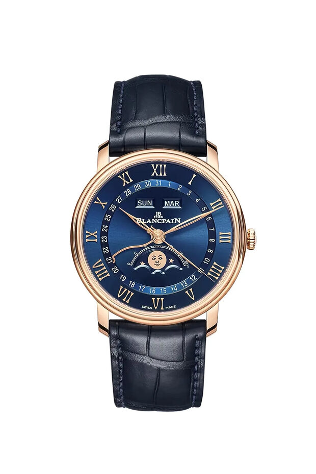 얇은 솔리드 골드 트리플 캘린더는 어떤 격식 있는 자리에서도 정답이다. 특히 블루 다이얼의 빌레레 콴티엠 콤플레처럼 우아한 모델이라면 더 말할 필요가 없다.