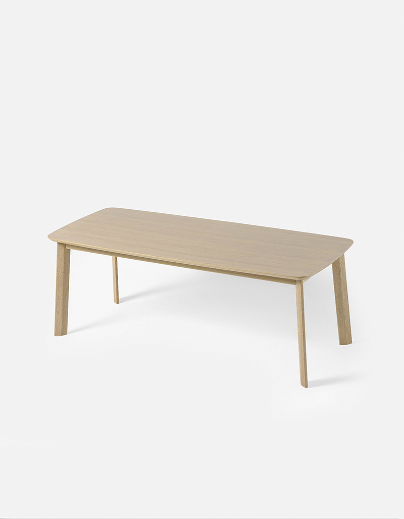 식사를 하거나 마주 앉아 대화를 나누거나, 하루 중 여기 앉는 시간만큼은 즐겁고 경쾌하길 바라는 마음으로 ‘허밍’이라는 이름을 붙인 다이닝 테이블을 만들었다. 이 테이블의 상판은 모두 직선이 아닌 완만한 호를 그려서 둥글게 만들어 손 닿는 모든 곳이 부드럽고, 다리는 사선형 구조로 안정감을 높였다. 허밍 다이닝 테이블 6인용 2백45만원, 하바구든.
