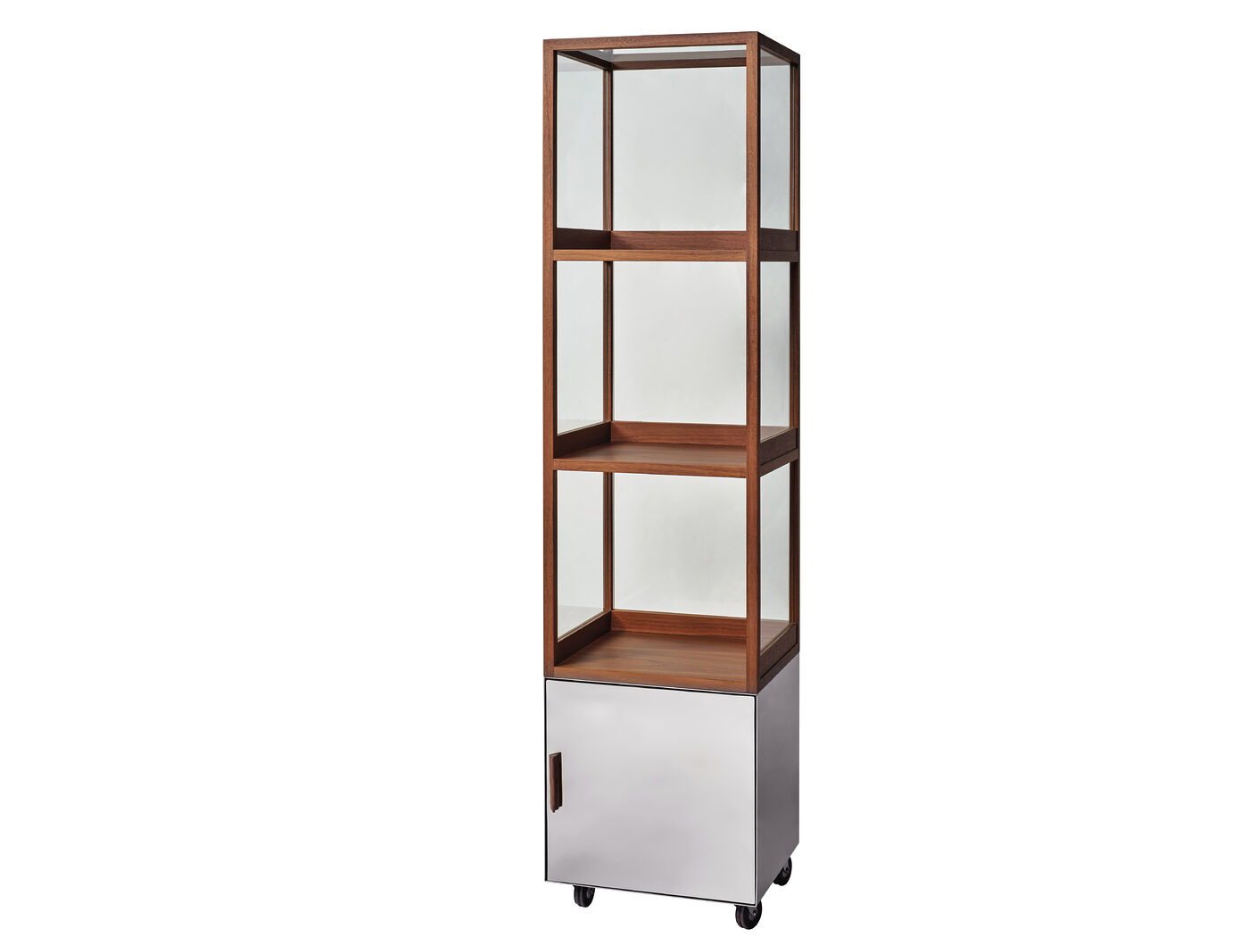 과거 선비들은 스스로 만든 소품을 자연 앞에 두고 사방에서 바라보며 그 물건이 지닌 참된 아름다움을 확인했다. 이 제품은 사면을 모두 투명하게 드러내는 유리 구조로 만들고, 여기에 나무와 스틸을 결합해 과거와 현재가 함께 호흡하는 형태로 재해석함으로써 시간이 흘러도 변하지 않는 미감과 사유의 태도를 담았다. 오픈 디스플레이 캐비닛 4백90만원, 이스턴에디션.