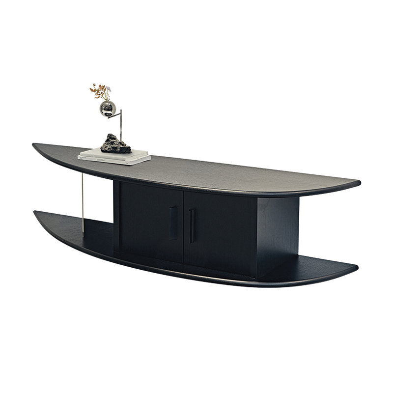 호두나무 무늬목으로 만든 이 가구의 본래 쓰임새는 벽걸이형 선반이나 탁 트인 창과 마주하거나 혹은 도리어 창 없이 텅 빈 방 안에 홀로 놓아두고 싶다. 그리하면 안빈낙도, 매처학자, 유유자적 24절기대로 흐르는 선비가 된 기분일 것 같아서. 오벌 월 콘솔 1백75만원, 이스턴에디션.