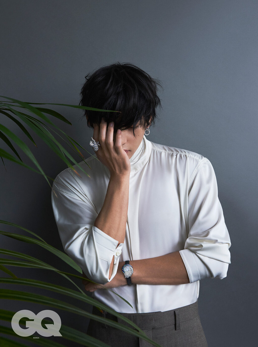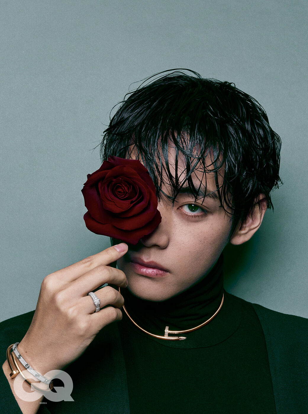 <지큐> 2월호의 주인공 뷔의 화보 미리보기. 까르띠에 주얼리 컬렉션 사이로 유유히 스며든 찰나의 순간들. 뷔의 화보는 2월호, 그리고 1월 15일 & 19일 <지큐> 웹사이트와 인스타그램을 통해 만날 수 있습니다.