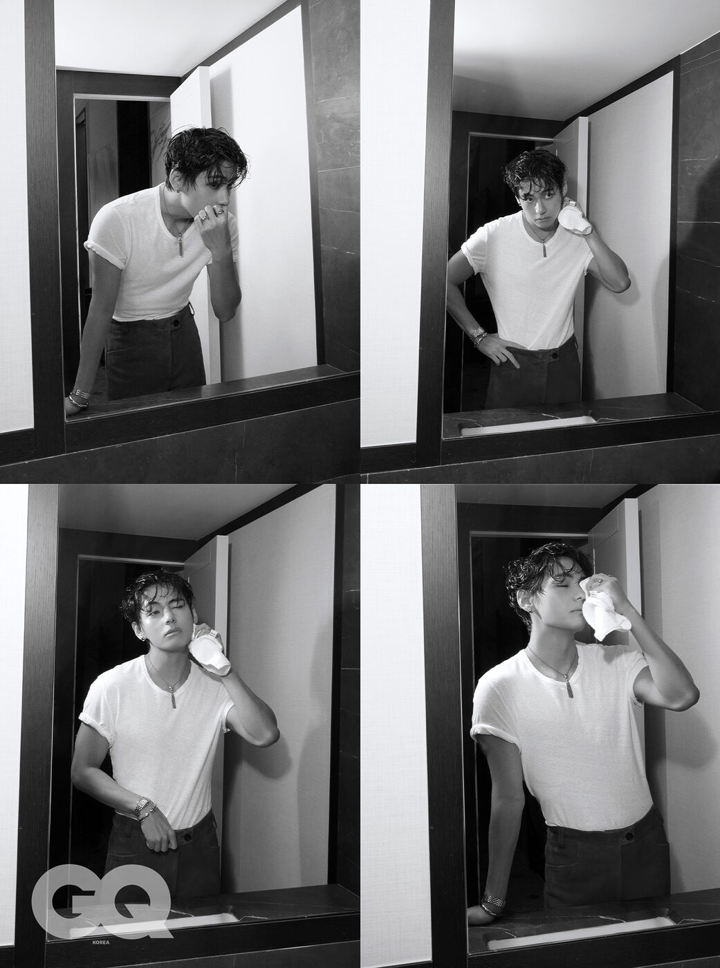 GQ 올해는 방탄소년단이 데뷔 13주년을 맞는 해잖아요. 이미 많은 것을 이룬 방탄소년단이지만, 아직 남겨둔 꿈이 있다면 그건 뭘까요? 팀으로서든, V로서든. V 지금은 콘서트, 새 앨범 외엔 다른 걸 일절 생각하지 않고 있지만 음, 꿈은 있어야죠. 꿈이라면 새 앨범이 아미 분들에게 사랑받는 거! 맞아요. 이게 제 꿈이에요. GQ 뮤지션으로서, 아이콘으로서, 또 <지큐>의 커버처럼 어떤 존재를 대변하는 아티스트로서, 이처럼 V에게 요구되는 많은 역할을 위해 어떤 보이지 않는 노력들을 할까요? V 경험이요. 기꺼이 다양한 경험을 하려 노력해요. 경험 후엔 어떤 것이 제가 가진 색과 잘 맞았는지 확인하죠. 저는 이런 과정 모두가 하나의 공부라고 생각해요. GQ 그 노력의 경험들을 V는 어떤 태도로 통과하나요? V 전 그냥 재밌어요! 역할놀이를 하듯이 다양한 페르소나들이 자연스럽게 만들어지는 것 같거든요. GQ 다양한 페르소나들을 만나며 V가 얻는 건 결국? V 진부한 대답으로 들릴 수도 있지만, 성장이죠. 그리고 변화요. 그렇게 성장하면서 내가 뭘 좋아하는지, 뭘 잘할 수 있는지 더 자세하게 알게 됐어요. 결국, 내가 어떤 사람인지 더 잘 알게 됐죠.