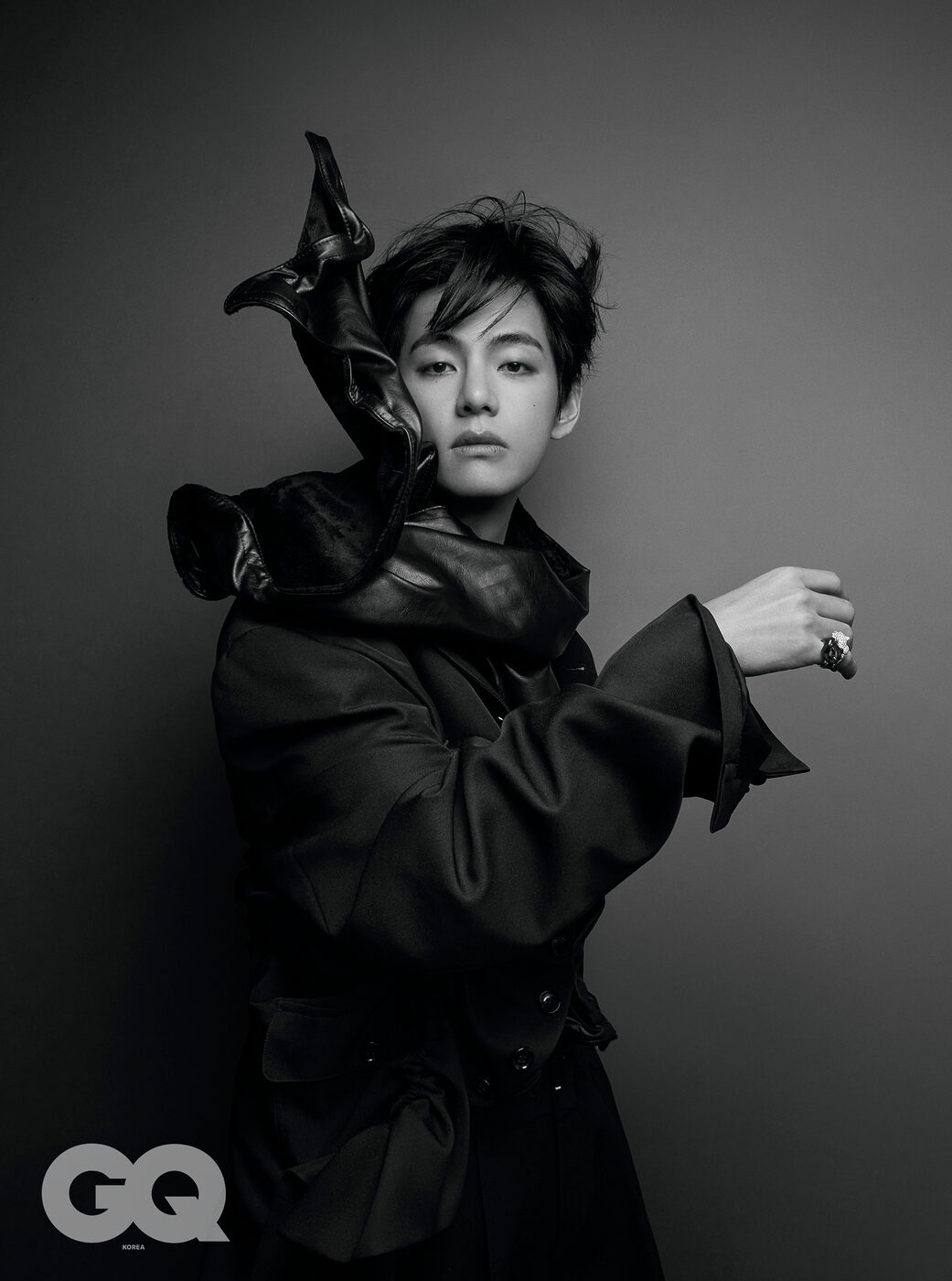 GQ V의 요즘은 어때요? V 곧 공개될 새 앨범 준비에 집중하고 있어요. 앞으로 아주아주 바쁜 날들이 이어질 것 같아요! GQ 모두가 기다리고 있죠. V 맞아요. 앨범도, 콘서트도 정말 오랜만이에요. 그래서 요즘 더 자주, 더 또렷하게 무대에 서는 것이 제 삶의 가장 큰 동기부여라는 사실을 느껴요. GQ 새 앨범을 준비하면서 멤버들과 어떤 꿈을 공유하고 있어요? 어떤 기대들이 때론 무겁게 느껴지진 않던가요? 아무래도 오랜만의 컴백이니까요. V 당연히 컴백의 무게가 무겁게 느껴질 때도 있어요. 그런데 뭐, 저는 무엇보다 즐기려고요! 그리고 아미분들에게 예쁘게 보이고 싶어서 지금은 다른 생각 안 하고 그저 열심히 준비하고 있어요. GQ 어떻게 열심히 준비하고 있는지 힌트 좀 준다면? V 제가 평소에 피부 관리를 잘 안 하는 편인데 이제는 일주일에 한 번은 팩도 붙일 만큼?