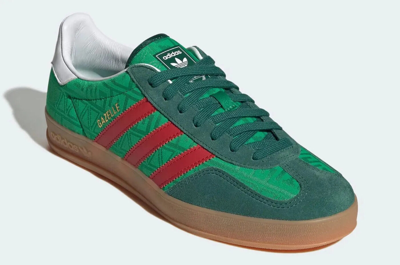 마지막은 멕시코 가젤 인도어다. 정확히 어떤 유니폼에서 영감을 받았는지 단정하기는 어렵지만, 굳이 꼽자면 1992년이나 1996년 유니폼이 떠오른다. 컬리지에이트 그린 컬러를 바탕으로 뒤꿈치 배지와 측면에는 화이트와 레드가 대비를 이루며, 멕시코 국기의 삼색을 은근히 떠올리게 한다.