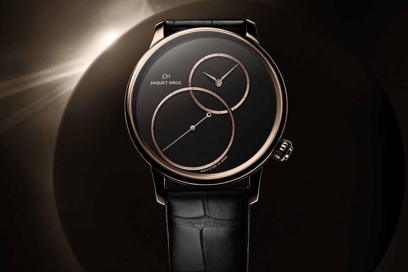 ‘옥’ 하면 떠오르는 녹색. 녹색 옥은 상대적으로 흔하다. 그러나 흑옥은 훨씬 희귀하다. 중국에서 흑옥은 보물, 귀족, 완벽함, 불멸의 상징으로 여겨진다. 그랑 세콩드 오프-센터드의 다이얼에 이 검은 옥이 사용됐다. 호주에서 조달한 흑옥은 그 안에 금속이 섞여 있기 때문에 매우 단단한 내구성을 자랑한다. 오랜 연마를 거쳐 탄생할 수밖에 없던 이유. 여기에 옥의 약간 거친 표면은 붉은 금 요소의 세련된 광택과 따뜻함에 대조되며 깊이를 더한다.