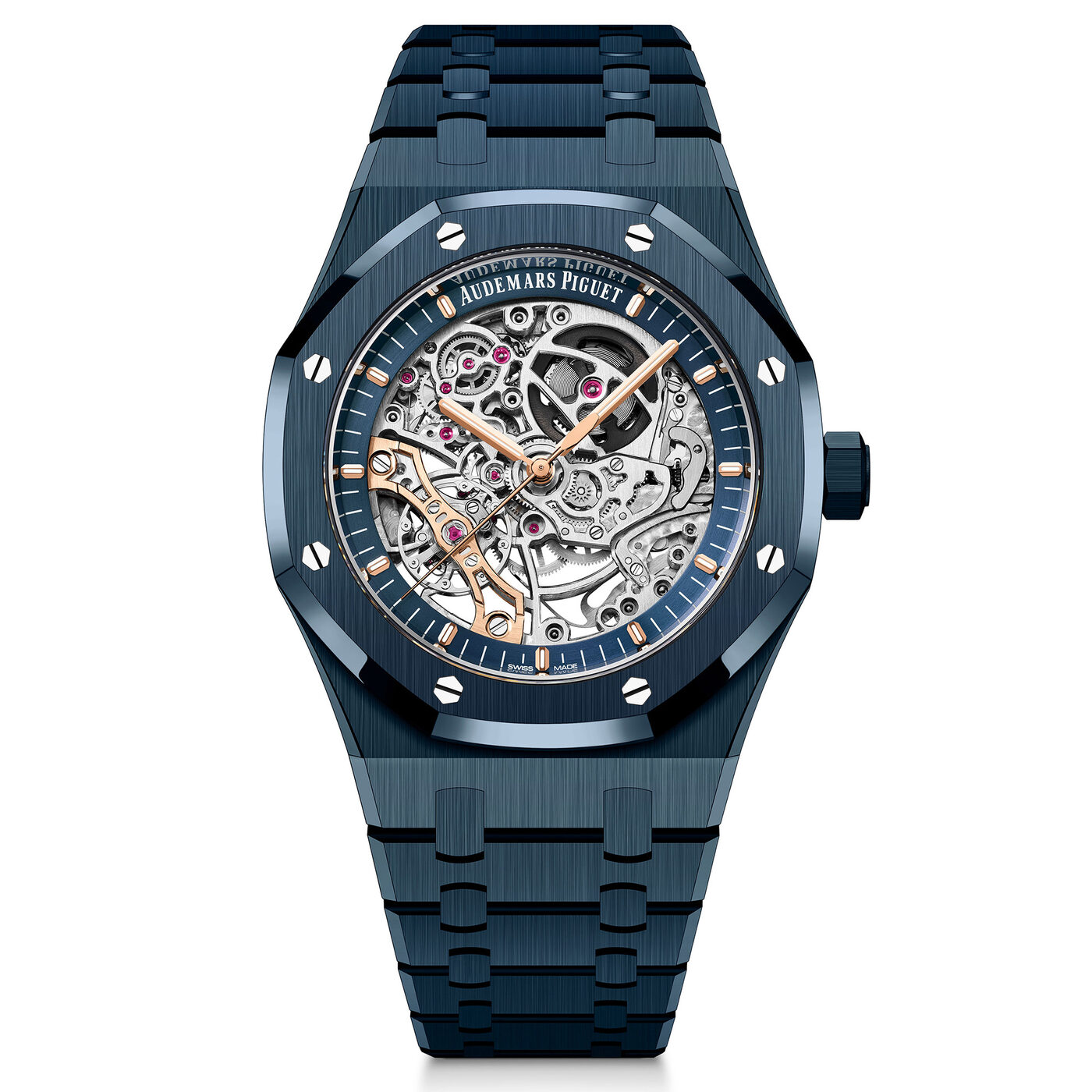 1970년대 아이코닉 디자인을 바탕으로 한 수많은 변주 중에서도 이 모델은 스켈레톤 다이얼을 통해 이름 그대로 더블 밸런스 휠 구조를 가지고 있다. 밸런스 휠은 기계식 시계에서 시간을 조율하는 핵심 부품으로, 두 개를 사용하면 정확도가 향상된다. 동시에 강력한 시계적 과시이기도 하다. 그가 착용한 레퍼런스 15416CD.O0.1225CD.01은 로열 오크 50주년을 기념해 2022년에 공개된 블루 누이, 뉘아주 50 컬러의 세라믹 케이스로 특히 인상적이다.