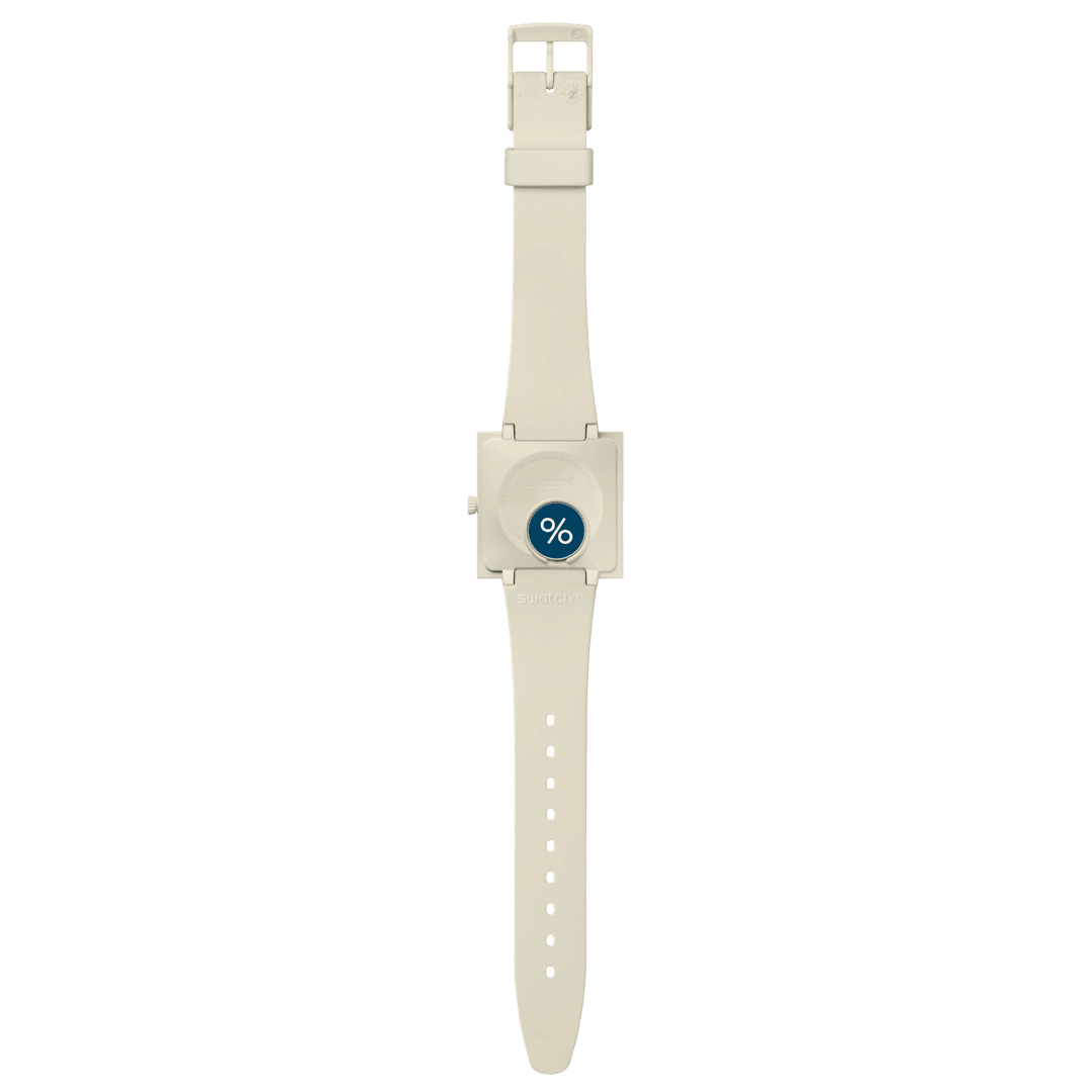 이 상징적인 쿼츠 시계의 41.8mm 케이스는 바이오 세라믹 소재로 제작됐으며 두께는 10.5mm다. 러그 투 러그는 33.25mm로 착용 시 안정감을 준다. 스트랩은 실리콘으로, 버클은 바이오 세라믹 소재로 만들었다. 색상은 베이지.