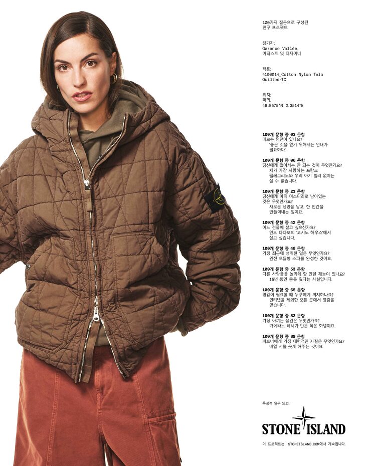 이번 프로젝트는 서로 다른 배경과 리듬을 가진 인물들을 다시 한자리에 모았다. 음악, 스포츠, 예술, 디자인, 퍼포먼스까지, 영역은 다르지만 이들을 관통하는 공통점은 각자의 분야에서 축적해온 시간과 태도다. 스톤 아일랜드의 옷은 이들 위에서 스타일을 주장하기보다 삶의 일부처럼 기능한다. 연구실에서 탄생한 기능성과 구조는 일상의 움직임 속에서 비로소 의미를 갖는다.
