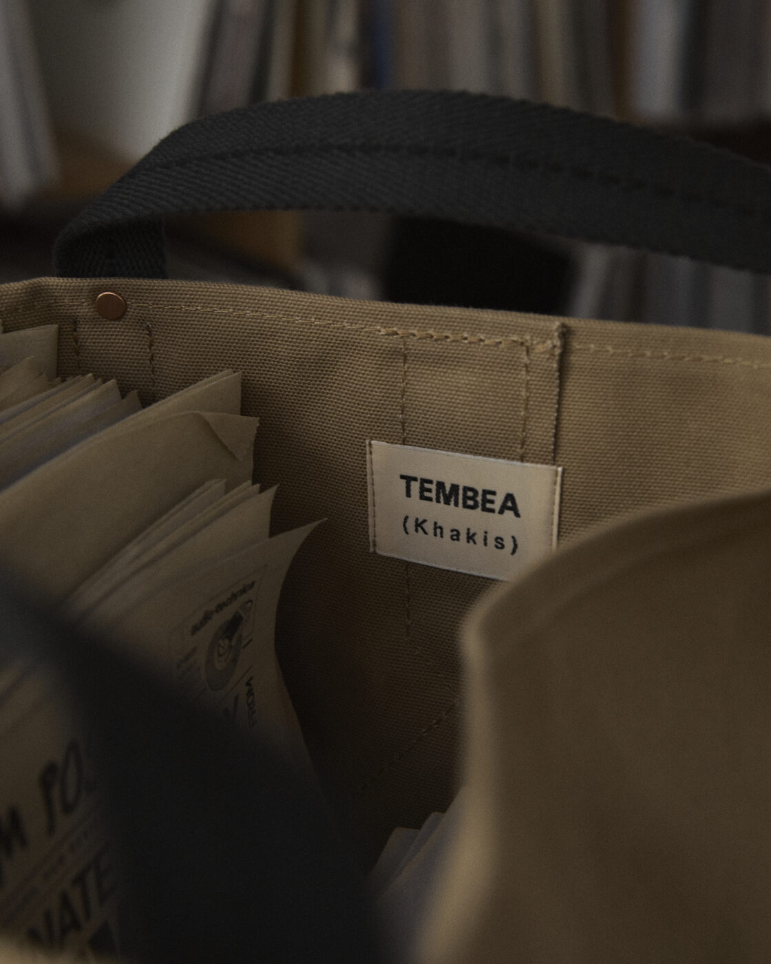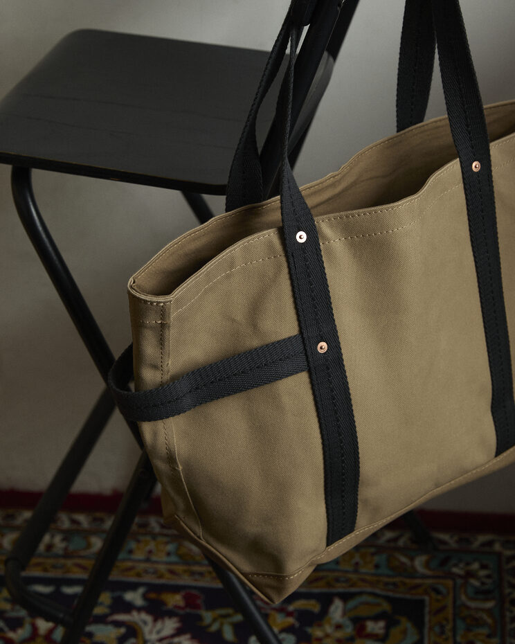 협업 컬렉션은 북 토트와 하베스트 토트 두 가지 토트백으로 전개된다. 템베아의 시그니처 코튼 캔버스에 카키스의 오리지널 코튼 웨빙 스트랩을 적용하고, 코퍼 톤 리벳 디테일을 더해 밀리터리 무드로 재구성했다. 차콜과 탠의 컬러 조합은 두 브랜드가 추구하는 일상적이고 자연스러운 분위기를 담아낸다. 캔버스 특유의 질감 덕에 사용할 수록 질감과 워싱이 변화해 나가는 매력을 느낄 수 있다.