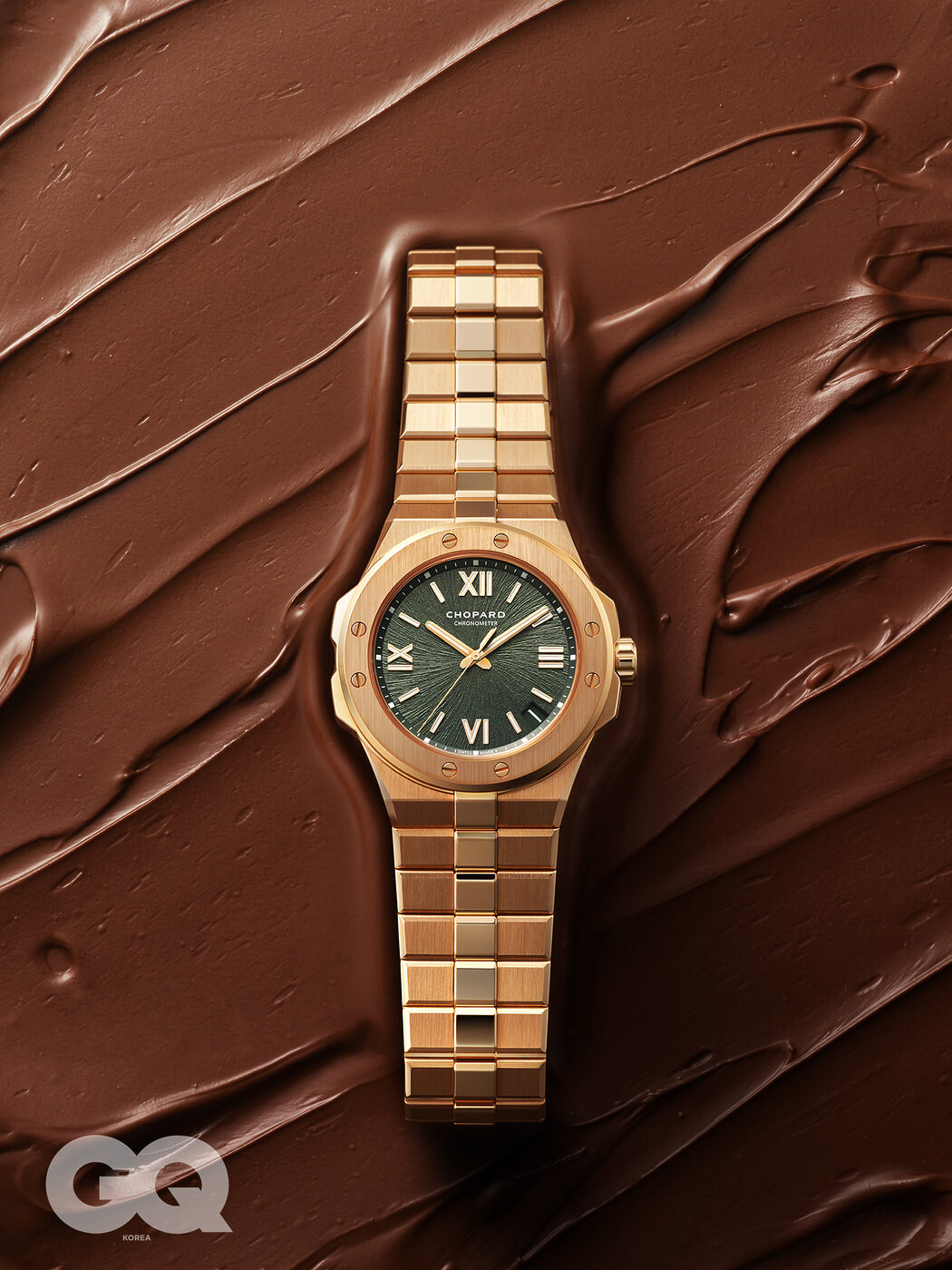 ‘알프스의 독수리’라는 이름에 걸맞게 동계 스포츠와 알프스산맥에서 영감을 받은 스포츠 워치다. 케이스와 브레이슬릿이 유연하게 이어지며 여덟 개의 스크루로 베젤을 견고하게 고정했다. 공정 채굴 방식으로 생산한 윤리적인 18K 로즈 골드 소재로 시계를 다듬고 다이얼엔 포인트로 짙은 그린 컬러를 넣었다. 알파인 이글 41 가격 미정, 쇼파드.