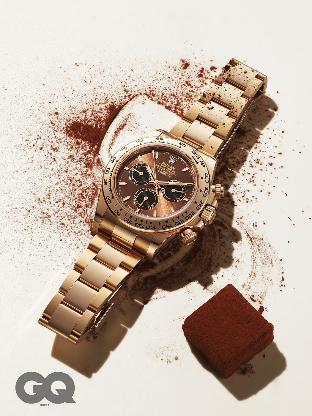 묵직한 한 덩어리의 금으로 주조한 듯한 18K 에버로즈 골드 케이스와 최대 시속 400킬로미터까지 측정 가능한 타키미터 베젤, 크로노그래프 디스플레이까지. 남자들의 상상력을 자극하는 요소에 부드럽게 반짝이는 초콜릿 컬러 다이얼을 더해 시계를 완성했다. 코스모그래프 데이토나 가격 미정, 롤렉스.