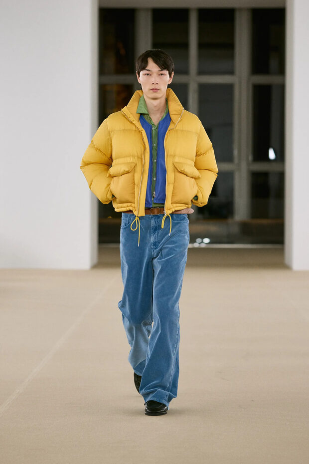 정확히 데자뷔는 아니었다. 하지만 몇 시간 전 오라리 쇼에서 특히 마음을 사로잡았던 것과 운율처럼 겹치는 무언가를 느꼈다. 완벽하게 크롭된 노란 재킷 몇 벌. 유난히 편안해 보이는 핏의 체크 수트. 그리고 풍부한 레이어링.