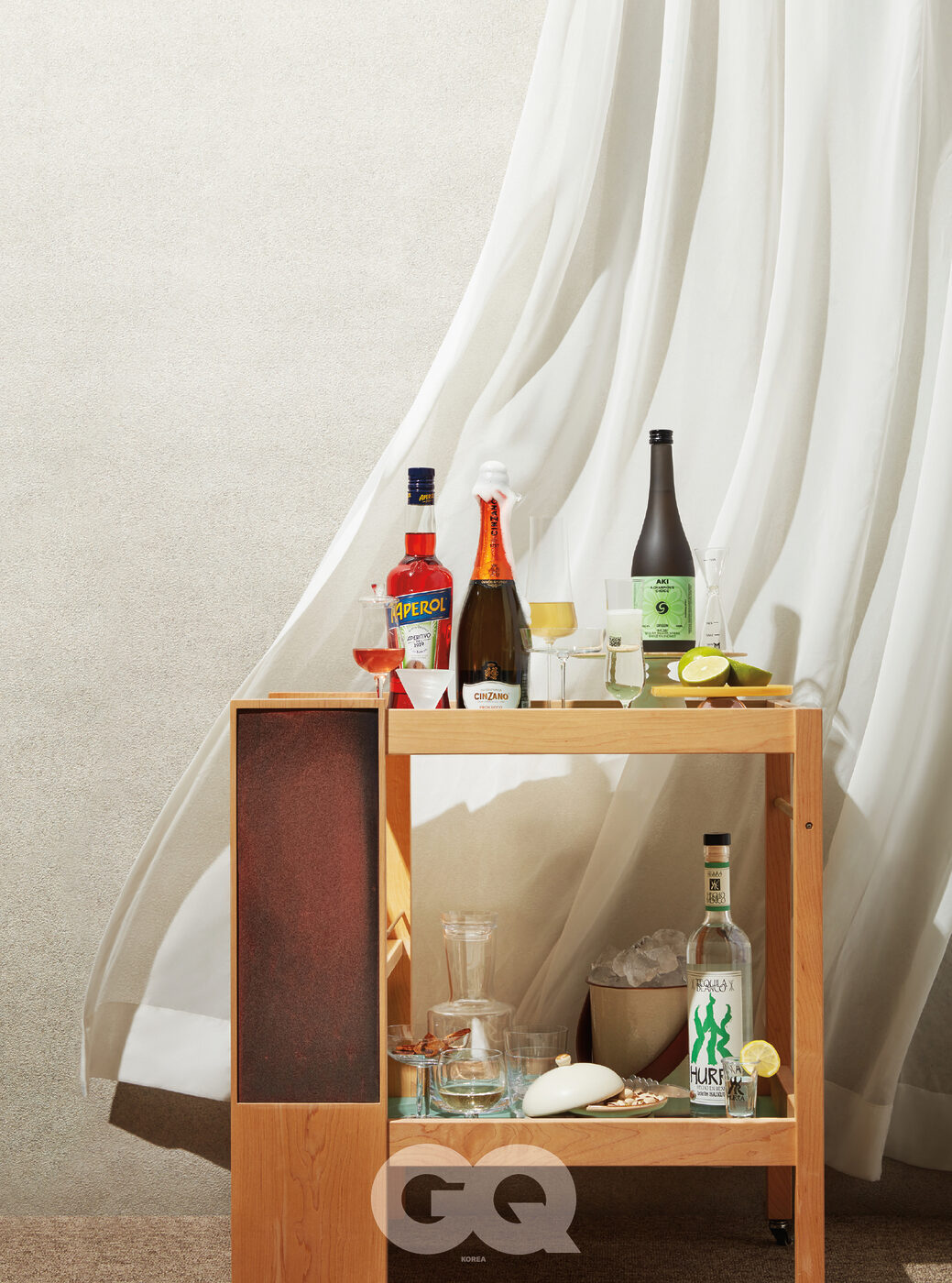 아페롤스프리츠, 친자노 프로세코 외울 것, 식전주의 기본 공식. 아페롤 60밀리리터 + 친자노 프로세코 90밀리리터 = 이탈리아 스타일 미식 여행의 서막이다. 취향 따라 얼음과 탄산수, 오렌지를 더해도 좋다. 한겨울에도 여름 한복판으로 데려다놓는 상쾌한 맛. 아키그린 교토 말차와 유자가 섞인 사케의 한 종류인 교토맛차슈를 평소 즐겨온 추성훈이 직접 기획해 한국의 재료로 그 풍미를 끌어올렸다. 뚜껑을 열자마자 초록의 말차 향이 은은히 샘솟는다. 후라 데킬라 소금과 레몬이 없어도 후라 데킬라가 있다면. 정통 데킬라 산지 멕시코 서부 할리스코 고지대에서 재배한 고급 블루 아가베로 만든 후라는 평균 40도를 넘는 데킬라 도수에서 5도 낮춘 35도로 부드러이 넘어간다.