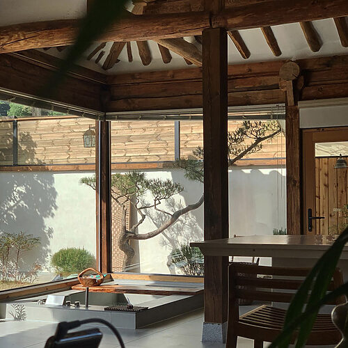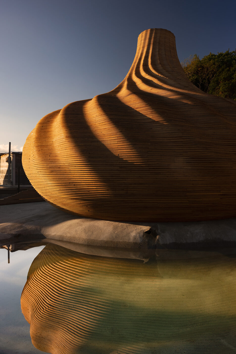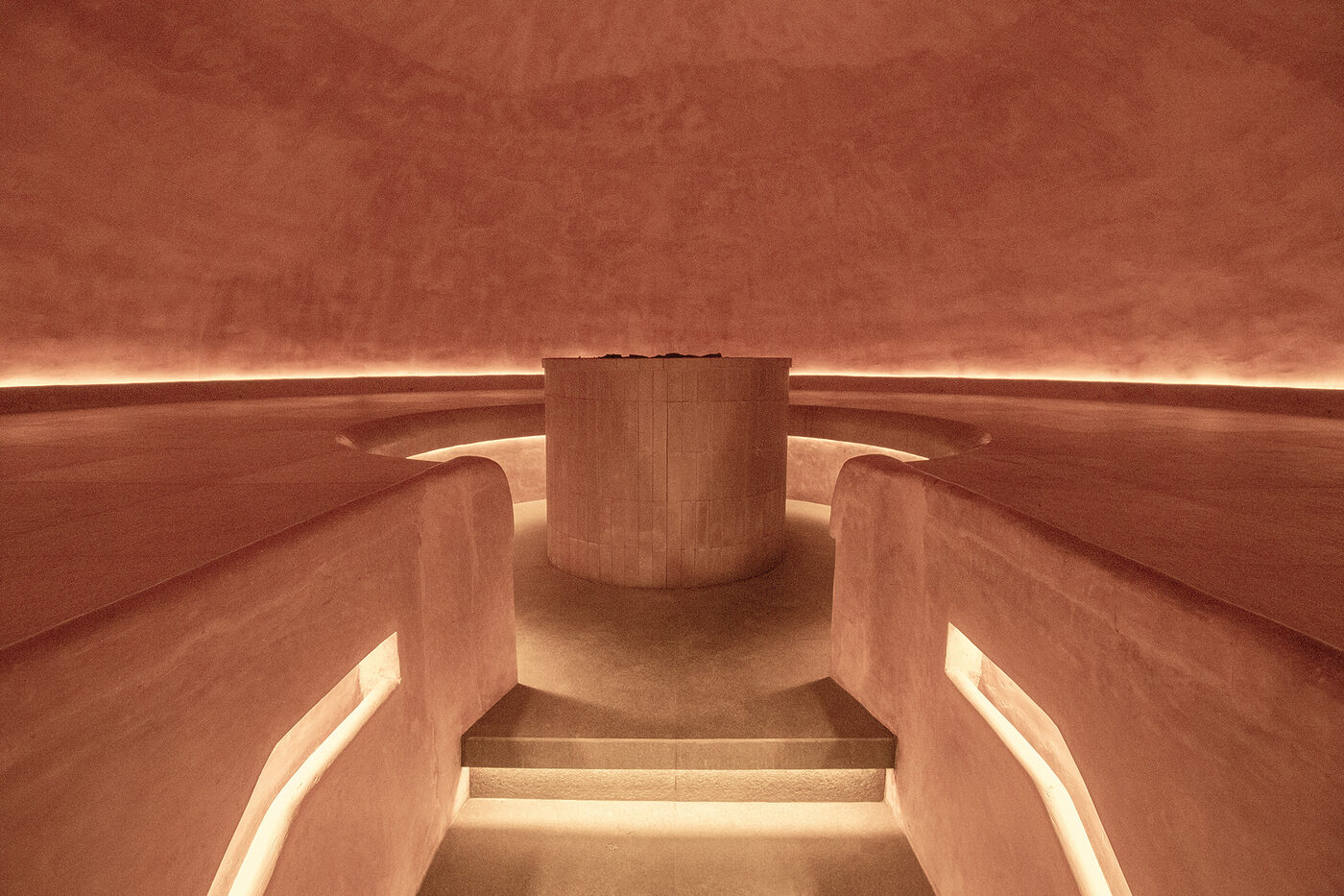 ‘예술의 섬’이라는 아름다운 수식어가 붙은 섬 나오시마에 압도적인 건축적 경험이 가능한 사우나가 있다. 글램핑 시설 ‘사나 마네 Sana Mane’의 중앙에 놓인 사우나, 사자에 Sazae. 당도하자마자 살며시 머릿속에 물음표가 뜬다. 혹시? 역시다. 건축가 구마 겐고의 작품인 이 사우나는 짐작하듯 일반 사우나보다 천장이 높은데, 단지 멋을 위해 기능을 소홀히 하지는 않았다. 주변 환경을 적극 활용한 환기 기류 시스템을 설계해 탁월한 온도와 습도를 유지하고 있다. 부드러운 곡선형 좌석에 앉아 조개 모양에서 영감을 받은 곡선으로부터 새어나오는 독특한 빛과 그림자를 가만히 바라보면, 내면의 시끄러운 소음이 땀으로 배출되는 기분이 든다. 나오시마에 다시 간다면, 그 목적은 목욕을 하기 위해서. 아니, 예술로 목욕을 하기 위해서.